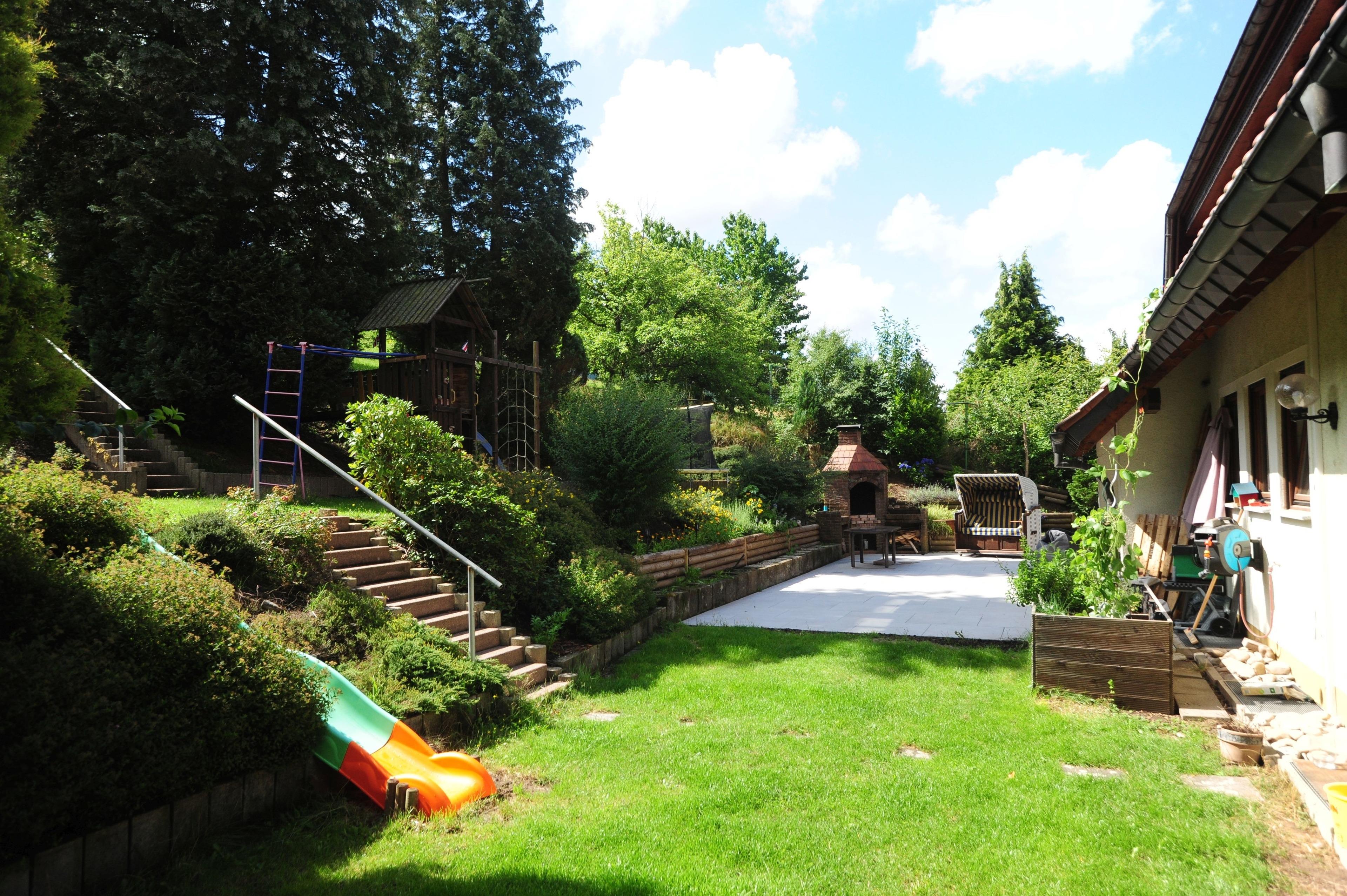 Der Garten ist ca 1000 qm groß. Dort kann getobt, gegrillt und entspannt werden.