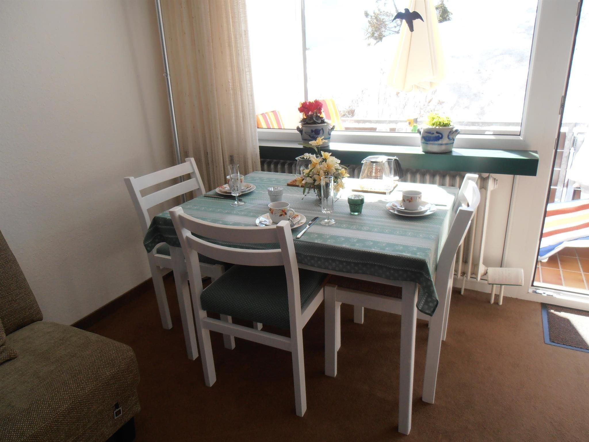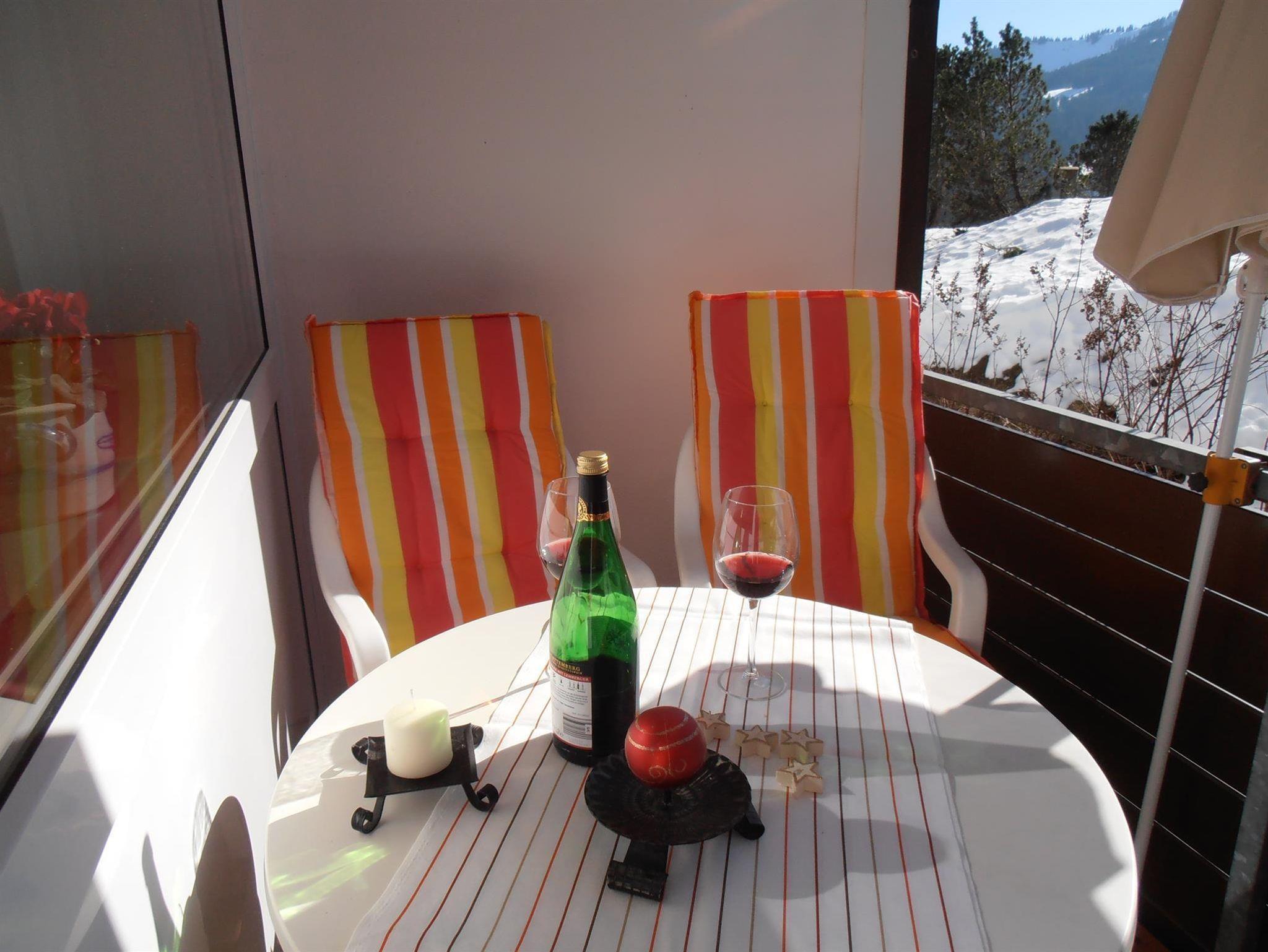 Unsere Ferienwohnung verfügt über einen schönen Balkon mit Blick auf die Berge und ist idealer Ausgangspunkt für Wanderungen.