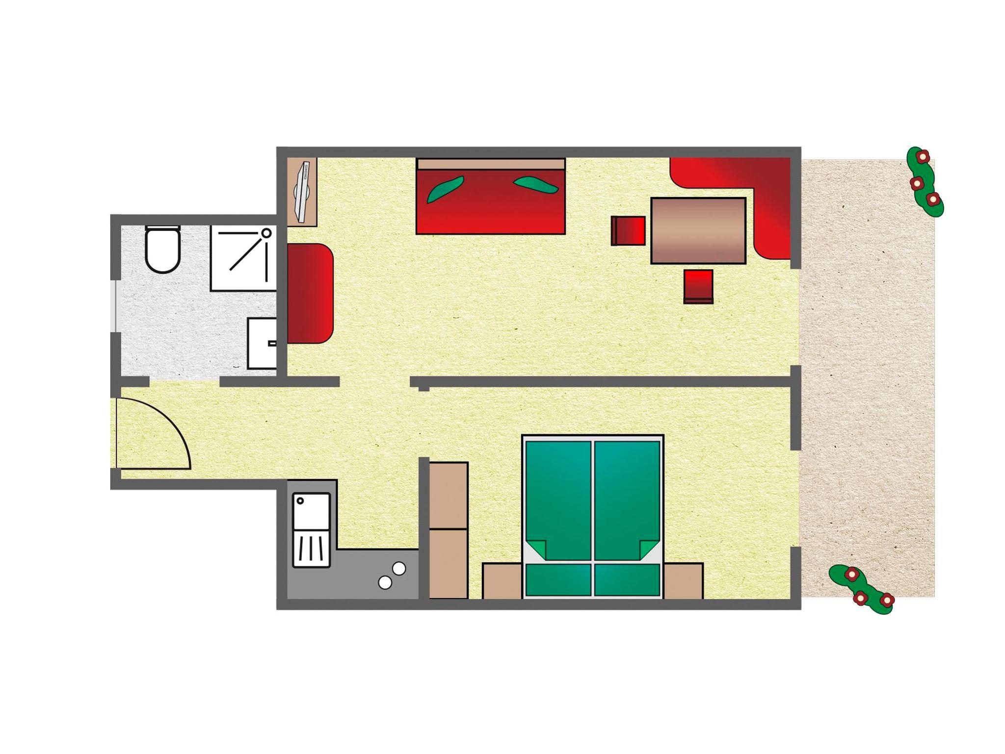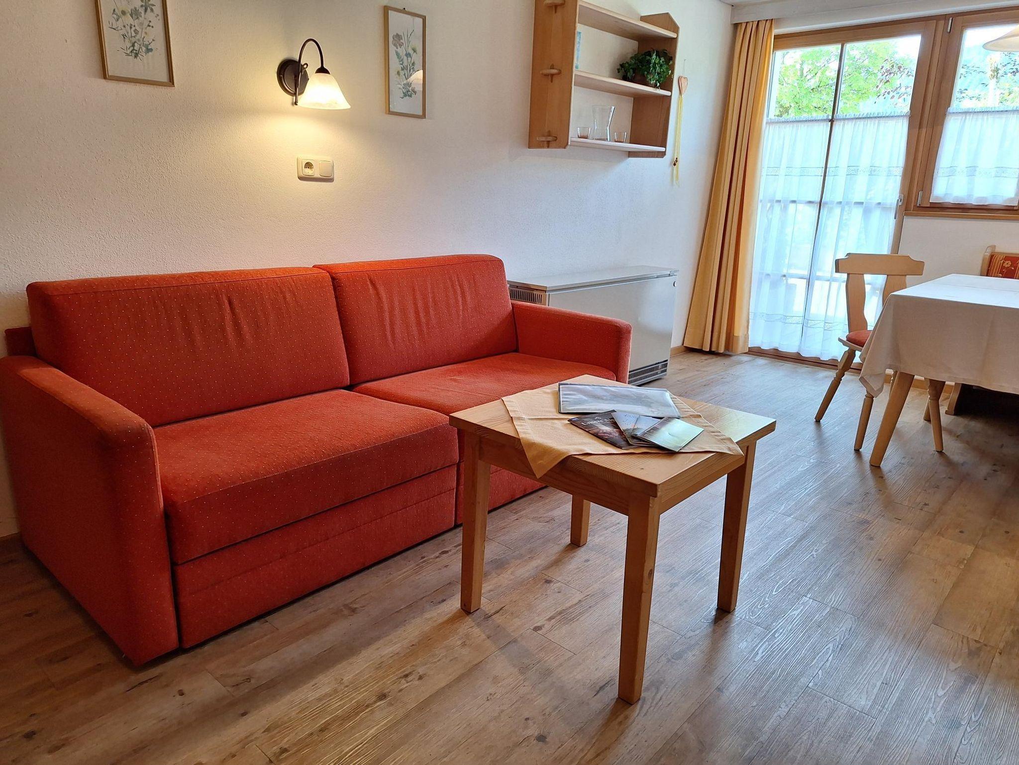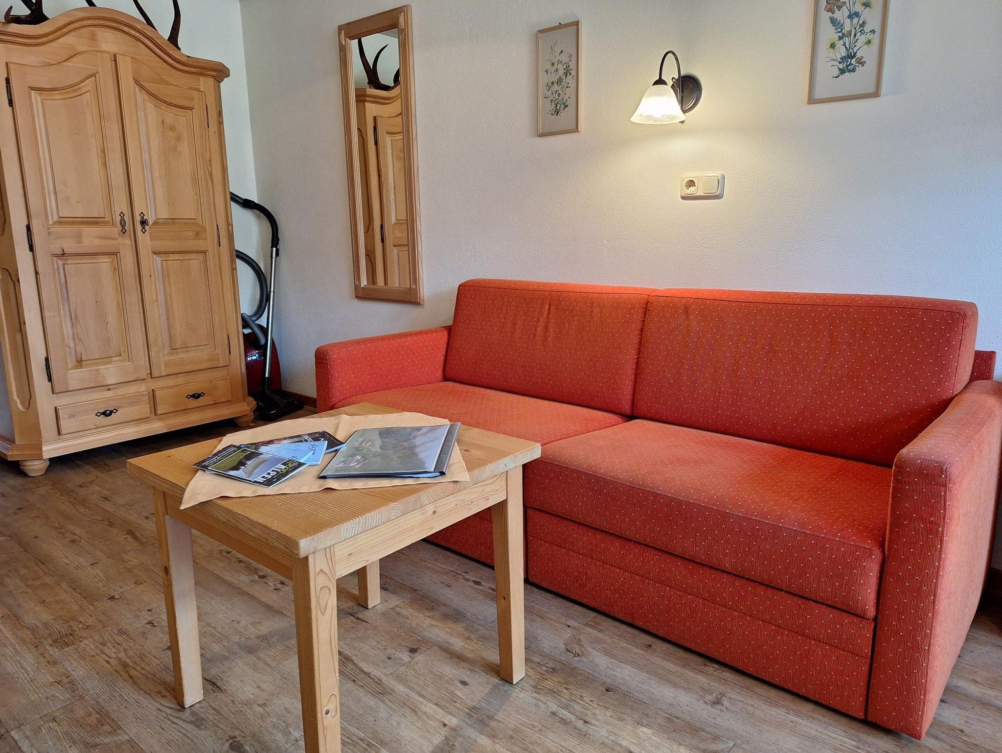 Ferienwohnung 45qm 3*** DTV Klassifizierung, im Nebengebäude,Südseite,Terrasse und Garten,sonniger Blick zu den Balderschwanger Bergen und Richtung Dorf.Ein gemütlicher Wohnraum, Essecke helle Landhaus Fichtemöbel,Sat-TV Flachbildschirm,Radio.1Schlafzimmer, Fußende der Betten offen.Safe. Küchenzeile mit Mikro, Kaffemaschine,Eierkocher,Toaster, Wasserkocher.D/WC mit Haarföhn und beleuchteten Kosmetikspiegel,Handtuchhalter. Desiner Bodenbelag.