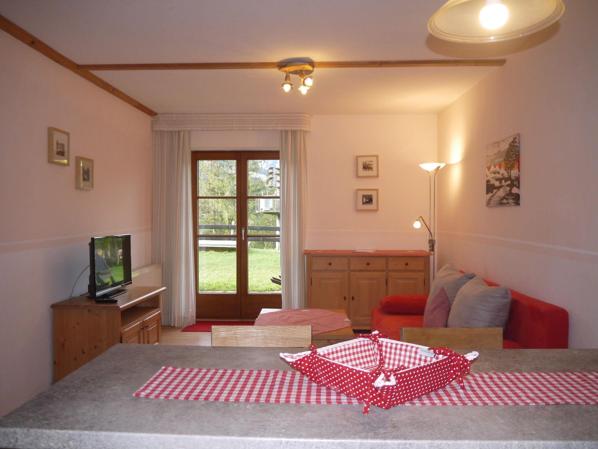 Wohnzimmer mit Ausziehcouch und TV;