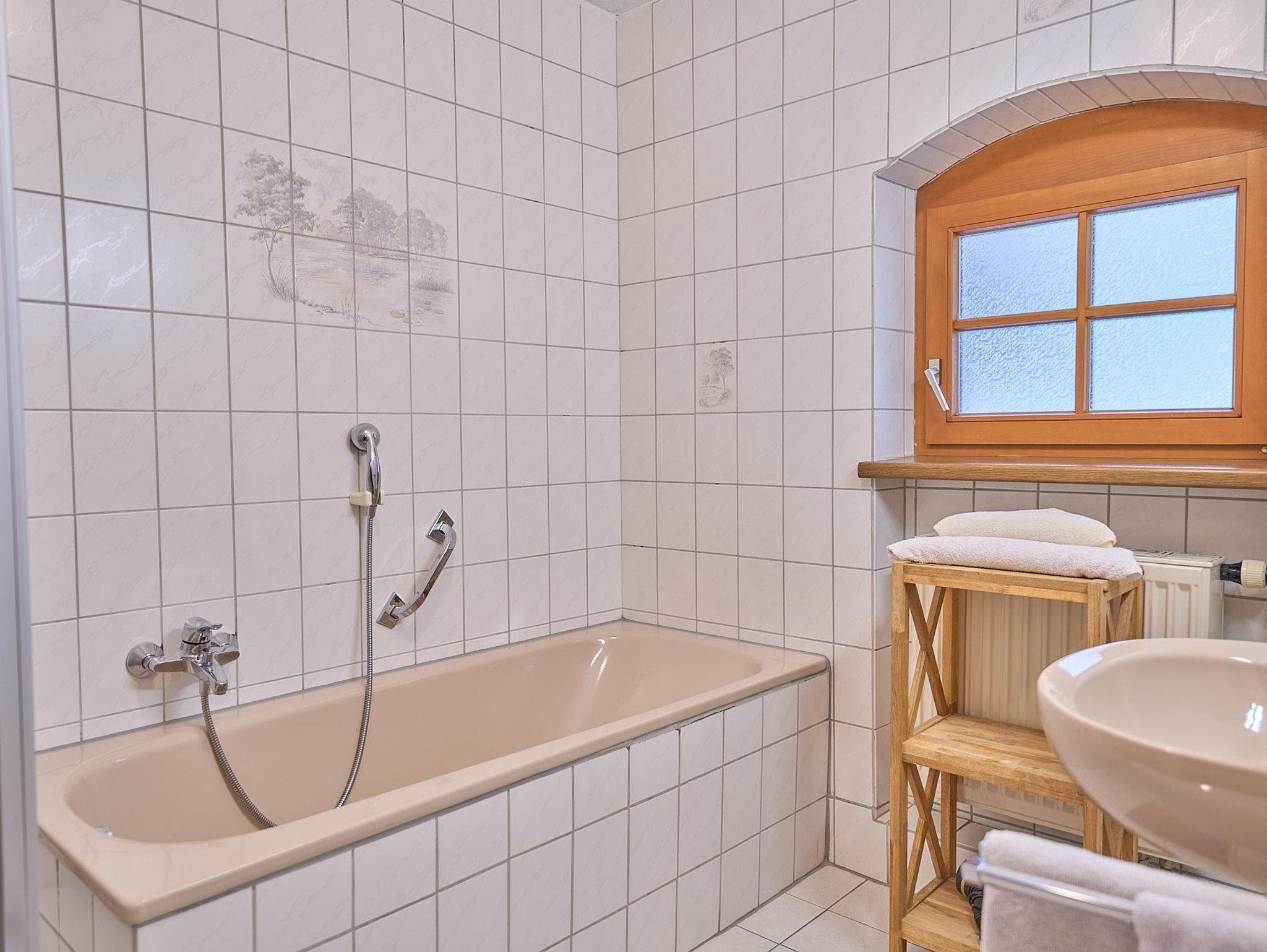großes Bad mit Badewanne/Dusche/Waschbecken; separates WC;