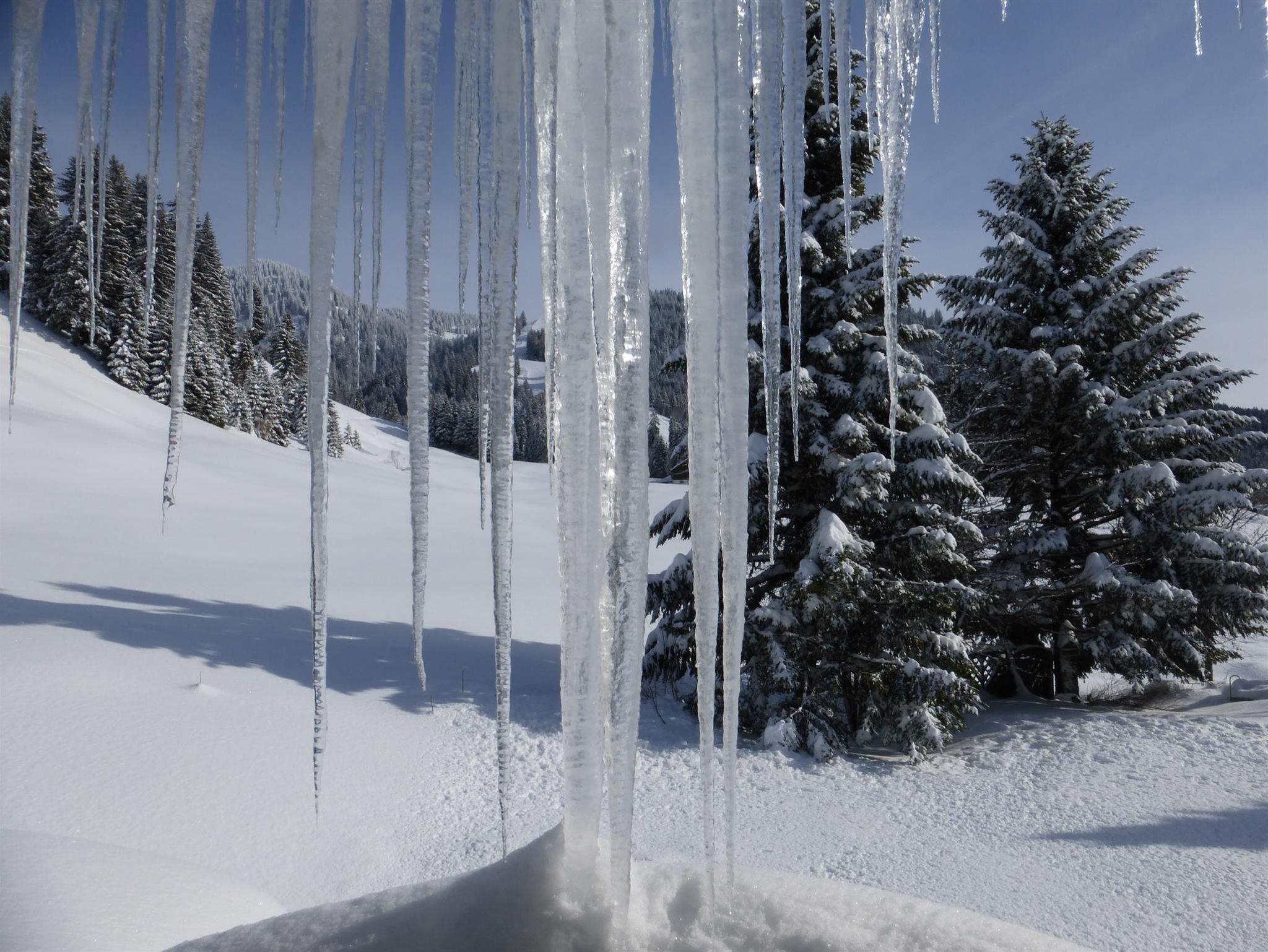 Weil das Skigebiet sehr schneesicher ist ist, weil die Unterkunft eine optimale Lage im Skigebiet hat. Abfahrt zum Lift auf Ski, Abfahrt zurück zum Haus auf Ski.