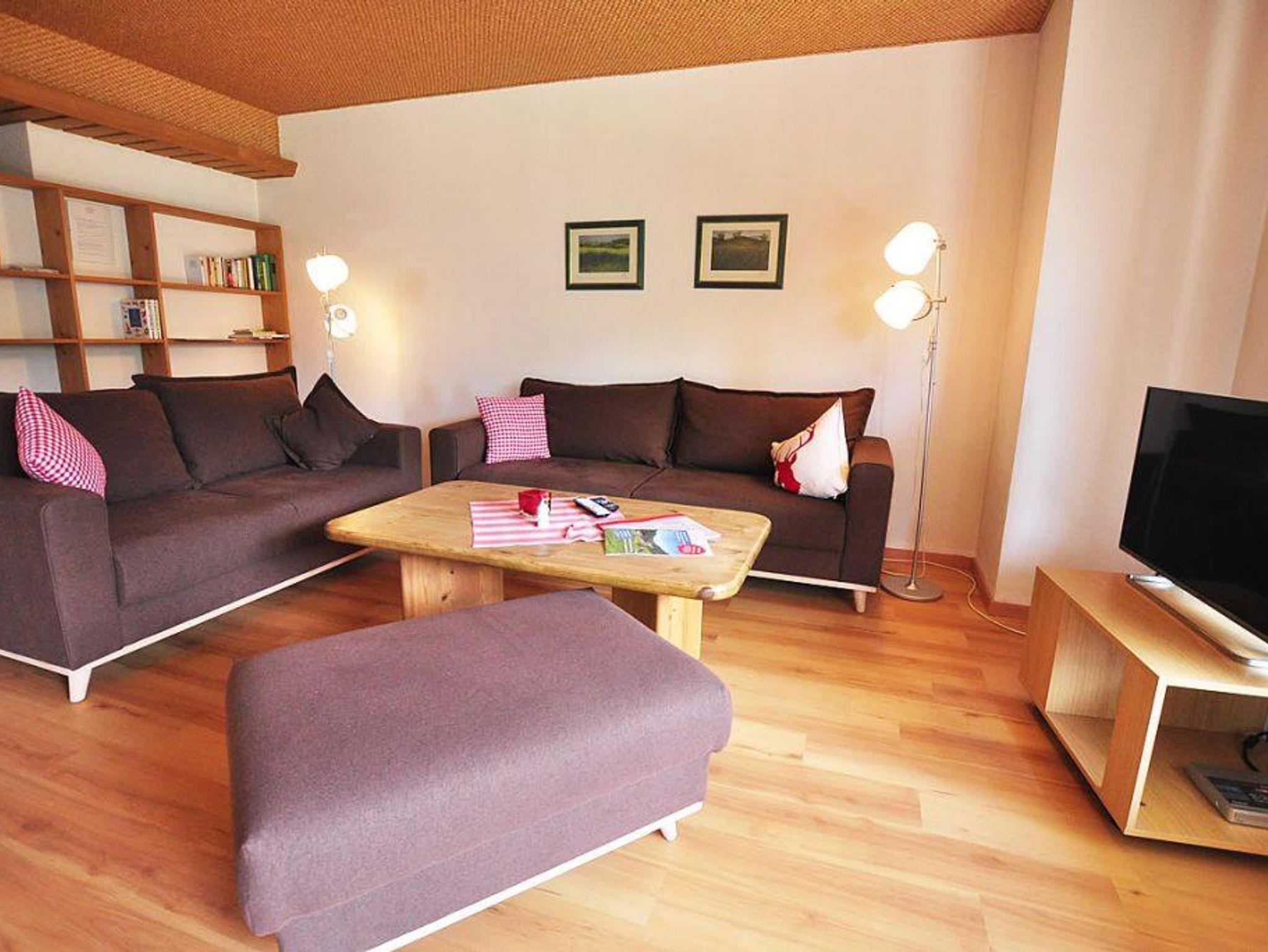 Wohnen mit Ambiente: Helle Naturfarben und Naturtextilien gepaart mit warmen Holzelementen. Die großzügigen Wohnbereiche bieten ideale Voraussetzungen für einen unbeschwerten Urlaub.