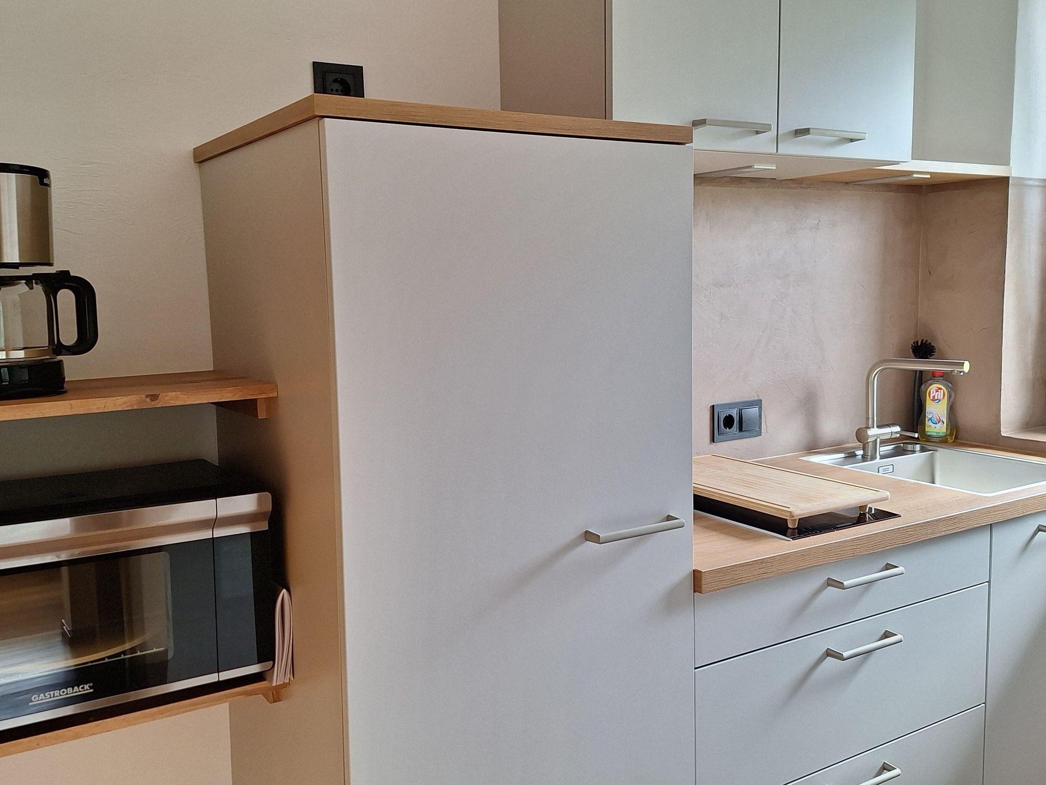 Unsere neu renoviertes Appartement Fuchs freut sich auf Sie! Es befindet sich in der Ersten Etage mit einem großen Südbalkon der den Blick auf die Berge freilegt. Das Appartement ist mit einem kombinierten Wohn- Schlafraum mit einer gemütlichen Sitzecke und Doppelbett ausgestattet. Eine kleine Küche befindet sich ebenfalls im Appartement. (Kühlschrank, 2 Herdplatten, Waschbecken) Das Badezimmer ist mit einer Dusche/WC und Föhn ausgestattet. Bettwäsche und Handtücher liegen für Sie bereit. Gerne können Sie unseren Brötchen- bzw. Getränkeservie nutzen.