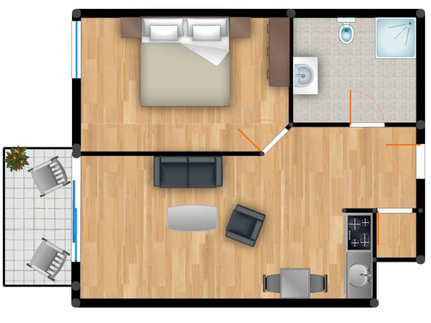Die helle und komfortabel eingerichtete, mit 4-DTV-Sternen zertifizierte 2-Raum-Wohnung weist bei einer Größe von 41 m² einen großzügigen Wohn- und Essbereich sowie ein vollwertiges Schlafzimmer auf.