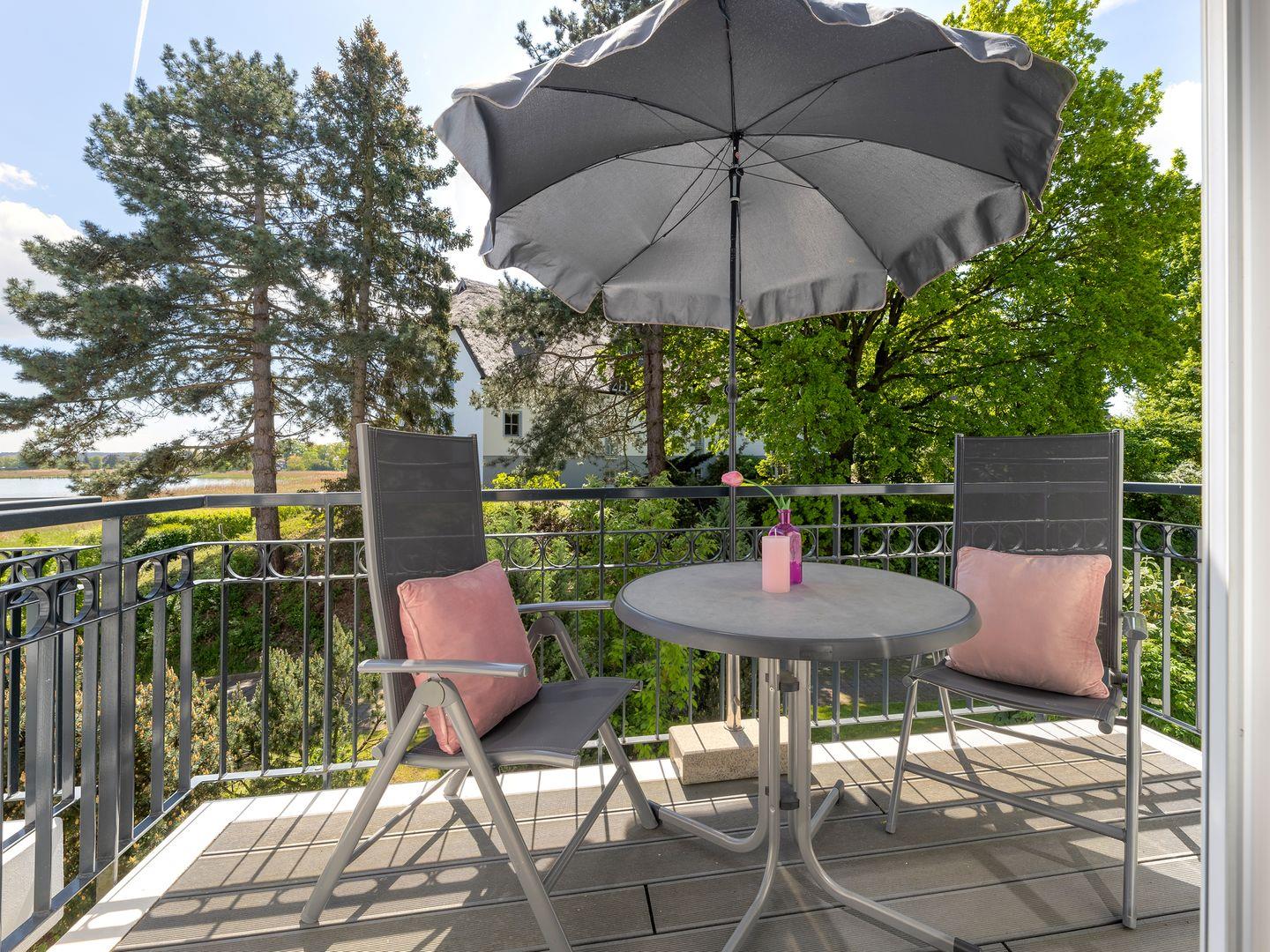 Genießen Sie die Aussicht und die Sonne auf dem Balkon bis in den späten Abend hinein.