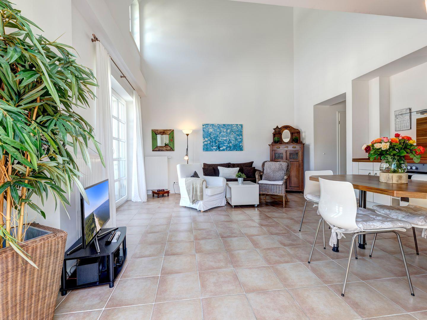 Der besondere Charme des Appartements liegt im offenen Giebel des Wohnbereichs, der das gesamte Ambiente mit natürlichem Licht durchflutet. Die freundliche und hochwertige Einrichtung in modernen Farbtönen sorgt für eine Wohlfühlgarantie, die jeden Urlauber begeistert.