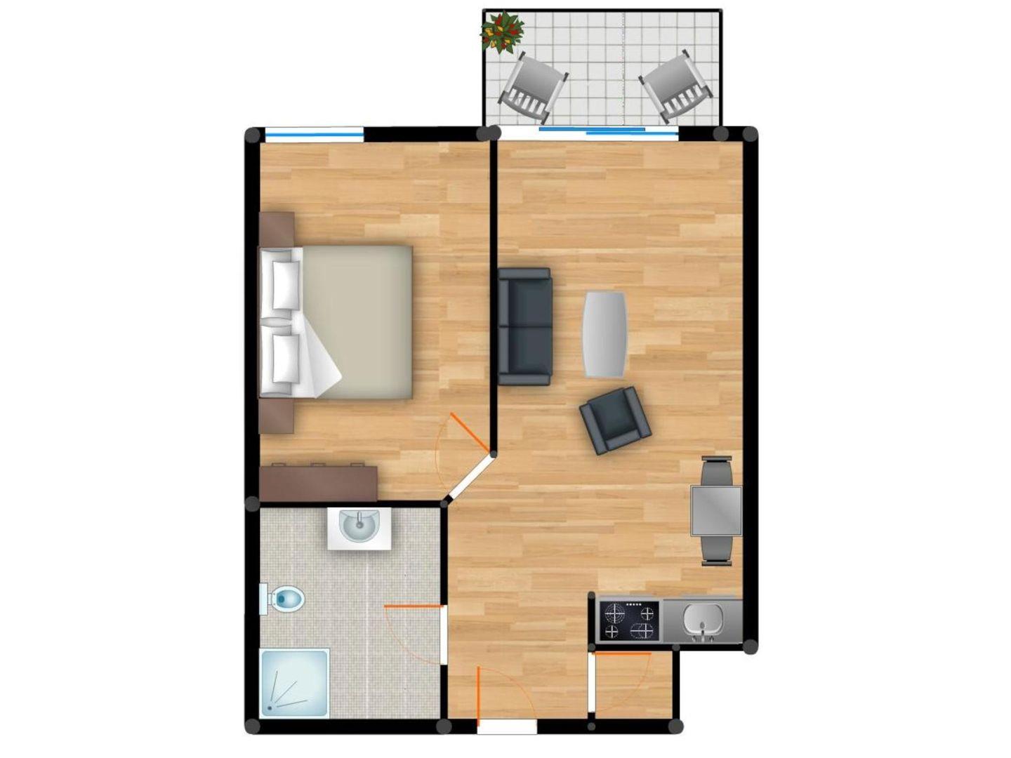 Genießen Sie Ihren Aufenthalt in einer komfortablen 41m² großen Ferienwohnung BS09 mit 2 Zimmern und sonniger Terrasse, perfekt für bis zu 2 Personen.