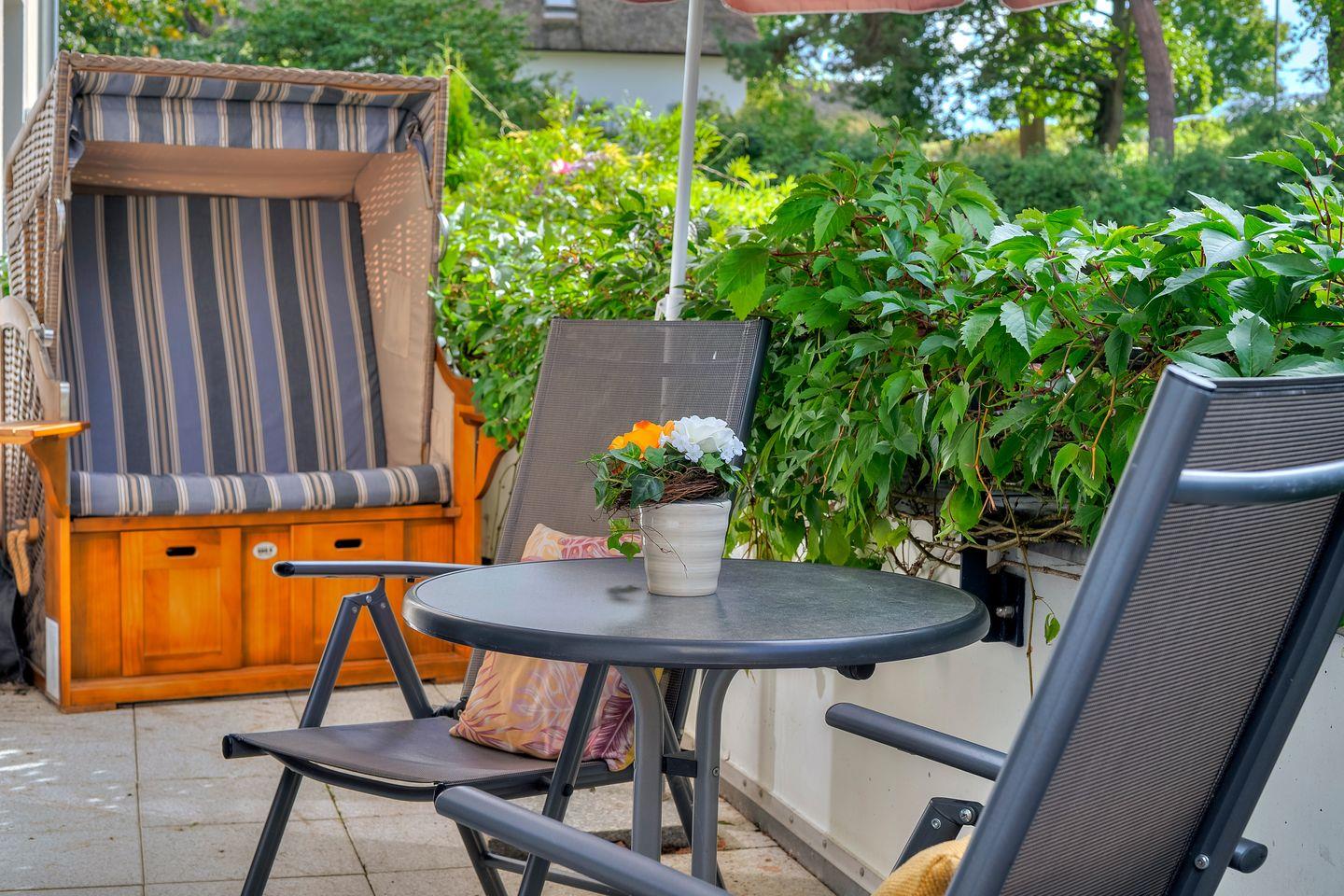 Genießen Sie die frische Luft und die Stille des Naturschutzgebiets auf unserer großzügigen abgeschlossenen Terrasse. Ein perfekter Ort, um sich zu entspannen, die Seele baumeln zu lassen und die Natur in vollen Zügen zu erleben.