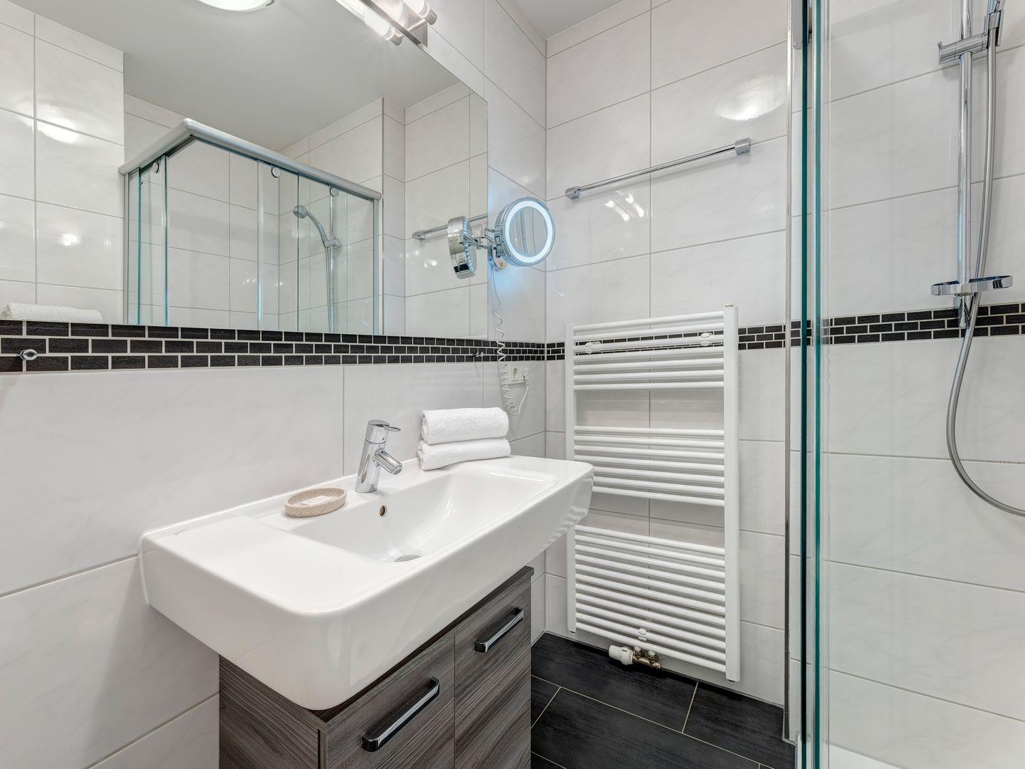 Tauchen Sie ein in pure Entspannung: Unser 150qm großer Wellnessbereich im Erdgeschoss begeistert mit drei Saunen (Finnische Sauna, Biosauna und Dampfbad), einem großzügigen Ruheraum und einem kleinen Fitness-Bereich. Erleben Sie Komfort pur, denn der kostenfreie Zugang ist bequem im Bademantel ohne das Haus zu verlassen.