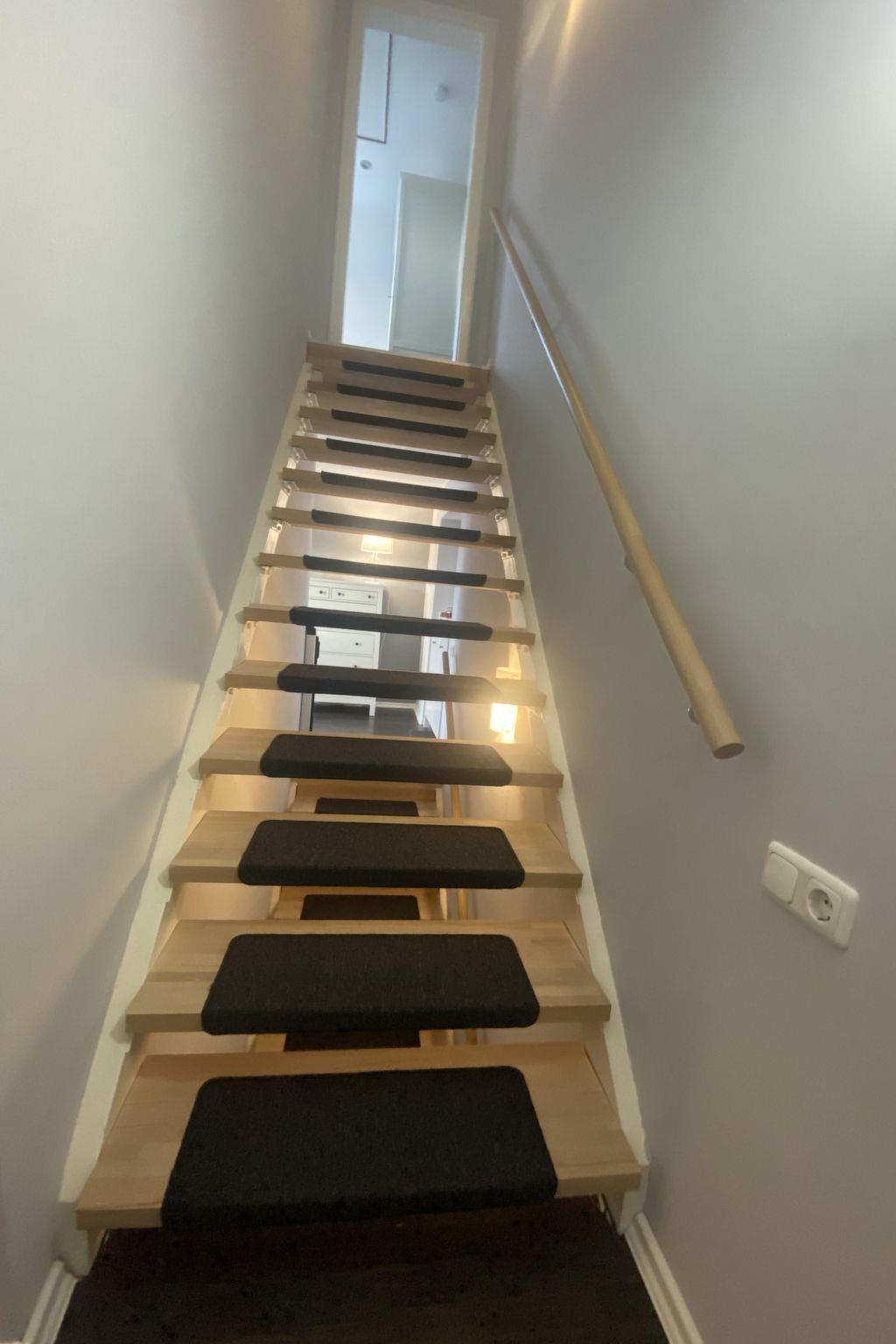 The apartment provides ample space for four people and has a range of amenities. It provides two bedrooms, a generous living and dining room, an exclusive bathroom and a lovely big balcony, all spread over two floors. The open kitchen is equipped with an induction hob, an oven and a dishwasher, along with various small electrical appliances. There are two flatscreen TVs, a DVD player, a stereo system with a docking station for an iPhone and a built-in radio and hairdryer in the bathroom.