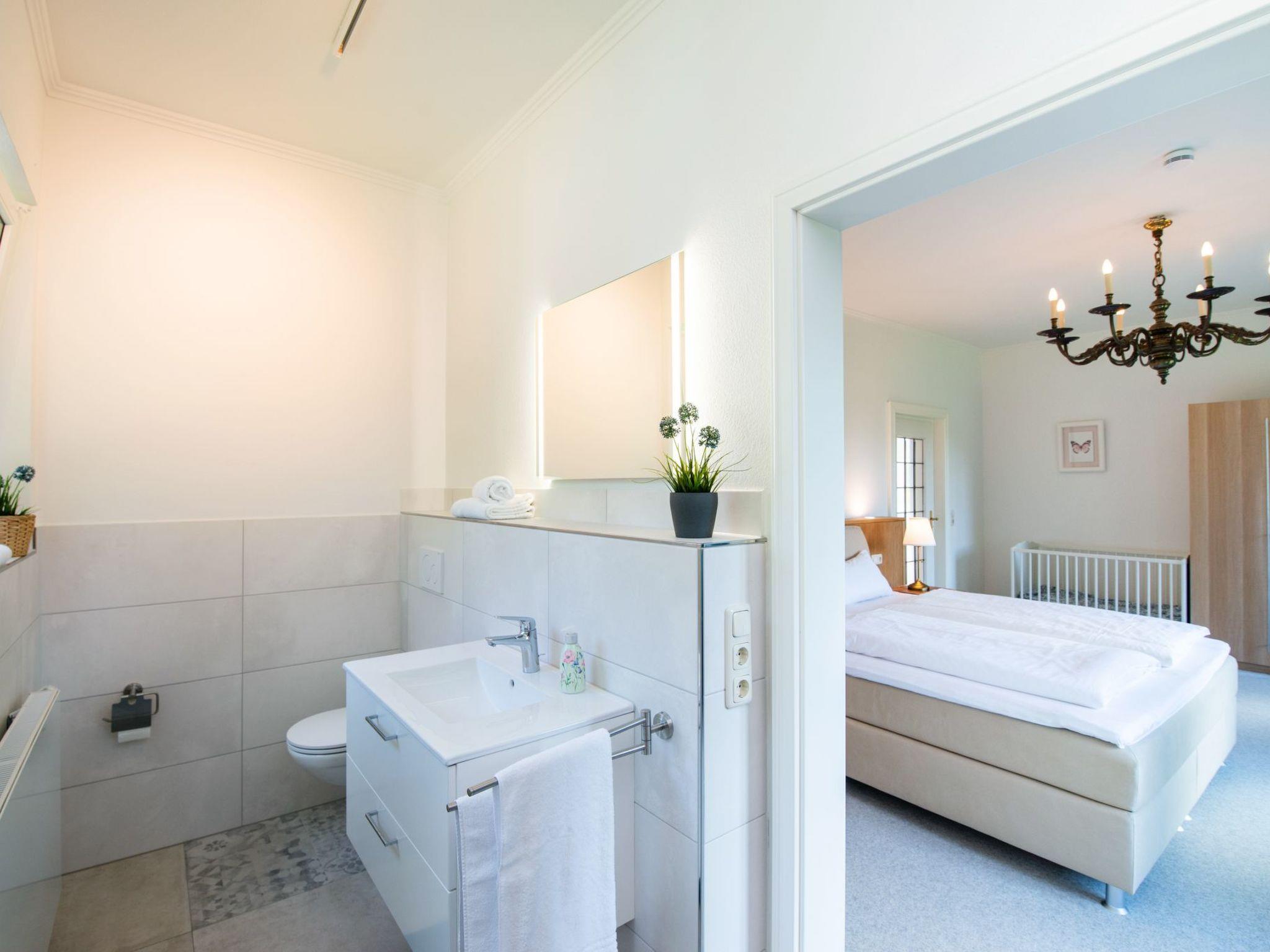 Outside, a terrace invites you to relax and enjoy. The garden, which you can use communally, offers plenty of space for your four-legged friend to run around or enjoy a relaxing sunbath. A charging station is available for guests travelling with an electric car, and you can safely store your bicycle in a covered and lockable bicycle storage area.