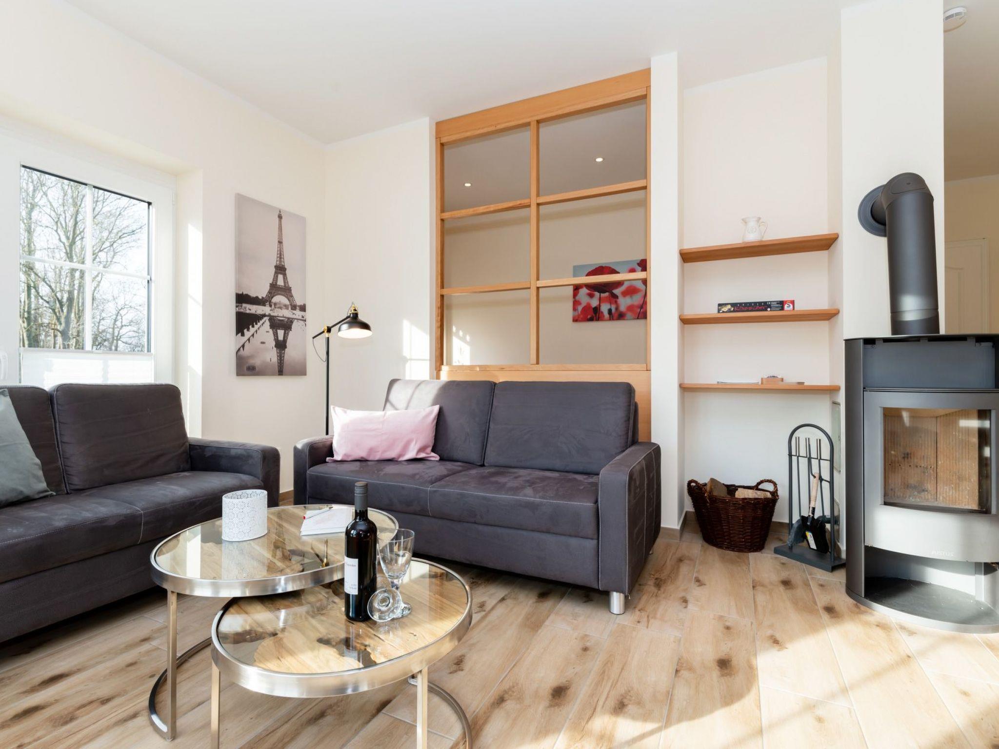 A cosy atmosphere awaits you inside the house, supported by the warming underfloor heating, which ensures comfort in every room. The technical equipment also leaves nothing to be desired: A Smart TV invites you to enjoy relaxing film evenings, while the washing machine for your sole use and a fully equipped kitchen with ceramic hob, dishwasher, filter coffee machine and kettle make your everyday life easier. Not forgetting the changing table, which is so important for child-friendly accommodation, and the inviting fireplace, which provides cosy warmth and comfort.