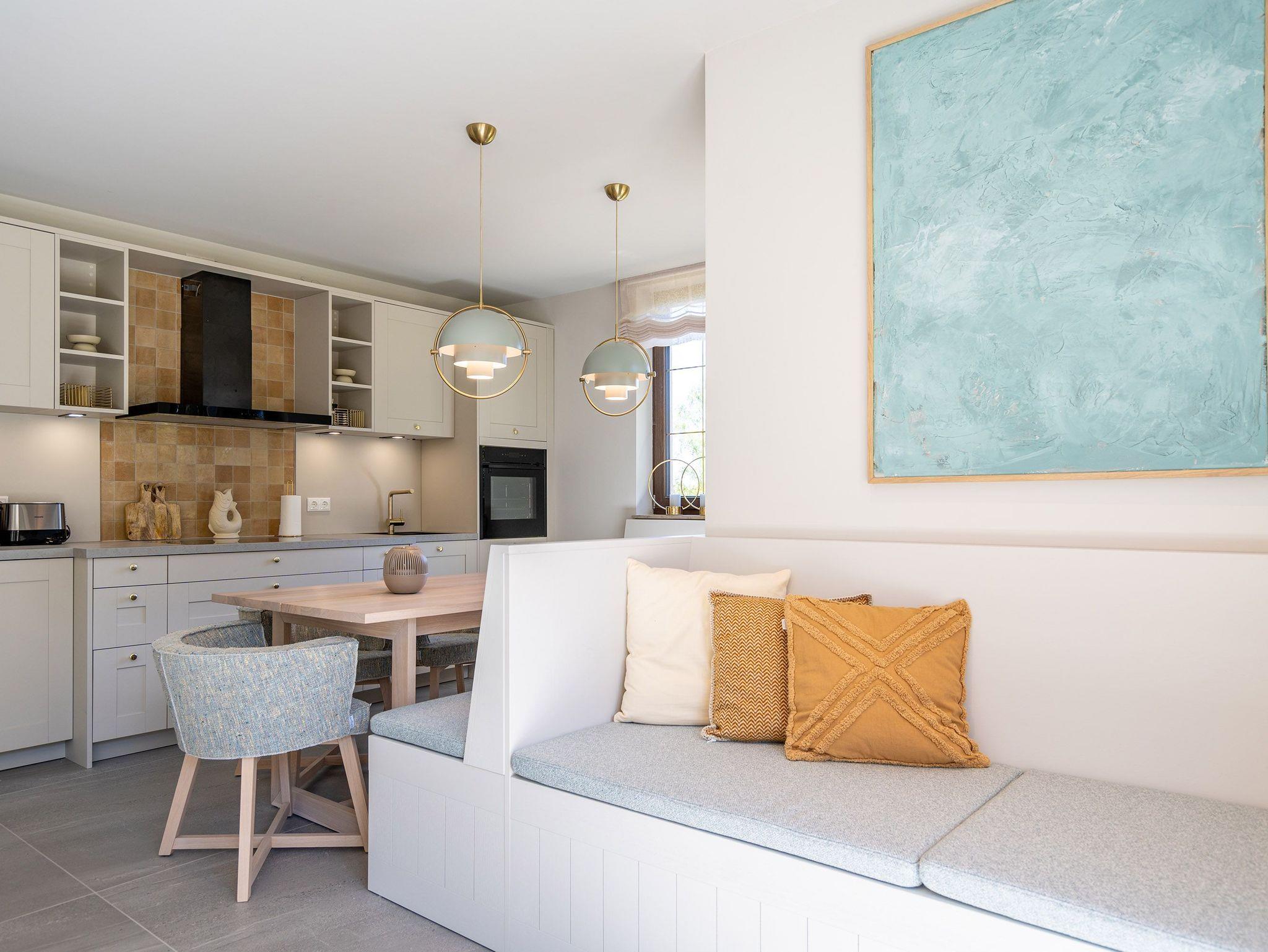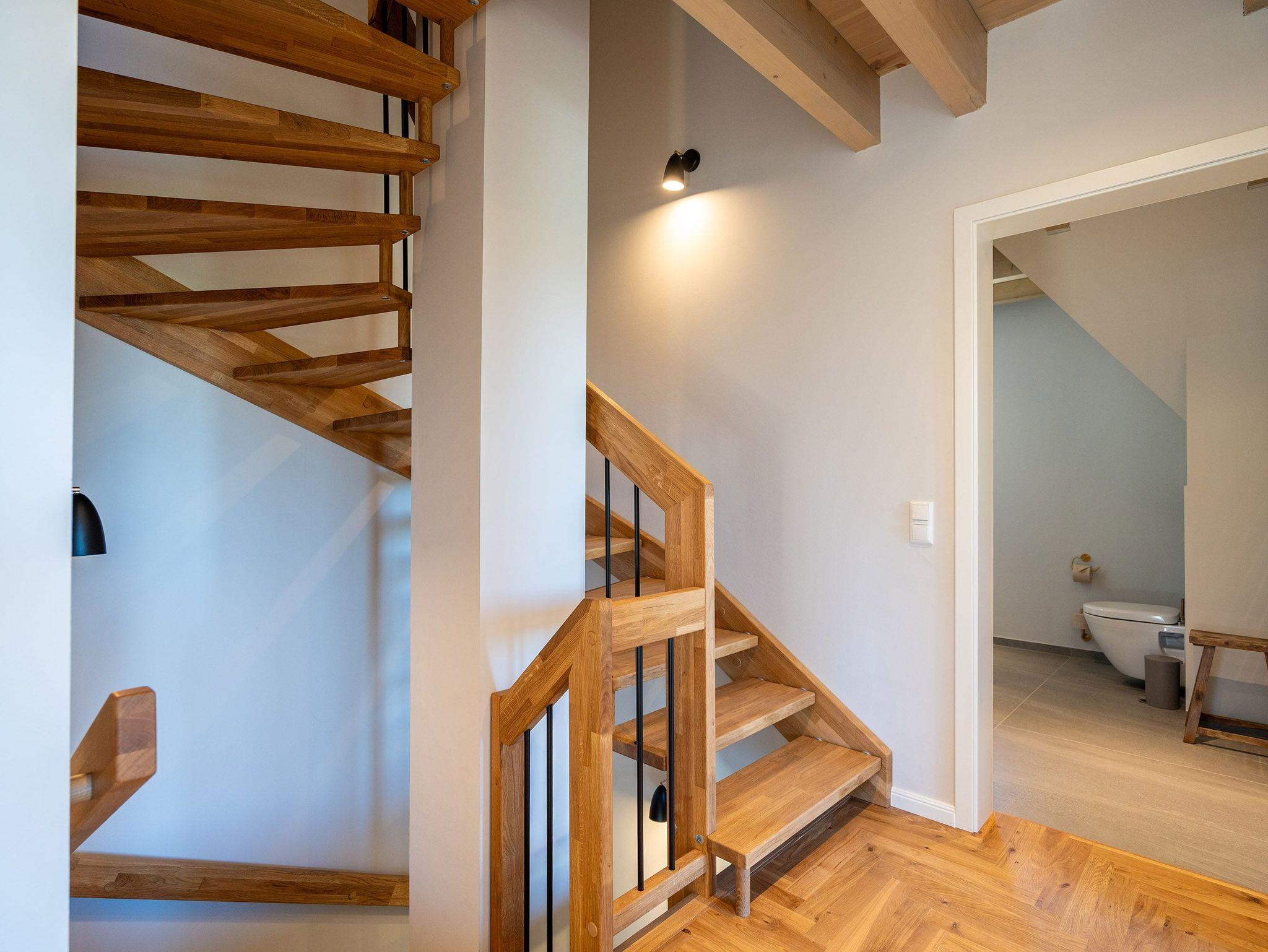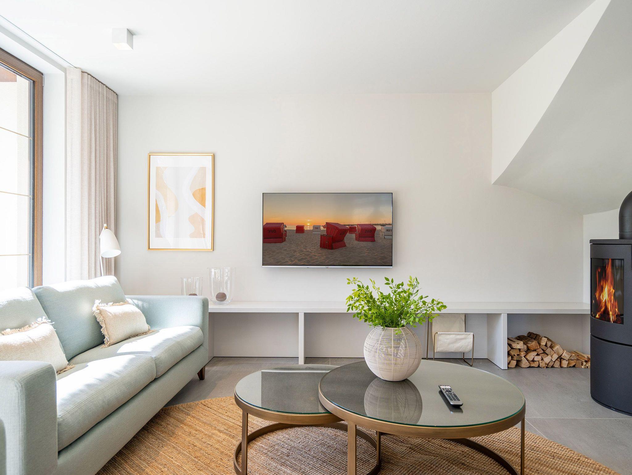 Willkommen in der charmanten Reetdach-Doppelhaushälfte, N° 4, im idyllischen Seebad Bansin. Diese geräumige Ferienwohnung erstreckt sich über drei Etagen und bietet Platz für bis zu 8 Erwachsene, perfekt für einen erholsamen Urlaub an der Ostseeküste. Im Erdgeschoss erwartet Sie ein einladender offener Wohn- und Essbereich, der für gemütliche Stunden mit Ihren Liebsten geschaffen ist. Die voll ausgestattete Küche verfügt über alles, was Sie benötigen, einschließlich eines Essplatzes für 8 Personen. Eine behagliche Sitzgruppe mit einem Flat-TV und einem einladenden Kaminofen sorgt für zusätzlichen Komfort. Vom Wohnbereich haben Sie Zugang zur sonnigen Süd-West-Terrasse (12 qm), die sich perfekt für entspannte Stunden im Freien eignet. Ein modernes Bad mit Sauna, einer erfrischenden Dusche, einem Waschtisch und einem WC sowie ein Waschtrockner im Flurschrank vervollständigen das Angebot im Erdgeschoss. Im ersten Obergeschoss finden Sie drei komfortable Schlafzimmer, jeweils ausgestattet mit gemütlichen Boxspringdoppelbetten (1,80m x 2,00m), einem Kleiderschrank und zwei davon zusätzlich mit einem Flat-TV. Zwei der Schlafzimmer verfügen über Zugang zum Süd-Ost-Balkon, der einen herrlichen Blick ins Grüne bietet. Ein weiteres Badezimmer mit Dusche, Waschtisch und WC vervollständigt diese Etage. Das dritte Obergeschoss beherbergt das vierte Schlafzimmer, das ebenfalls mit einem komfortablen Boxspringdoppelbett (1,60m x 2,00m), einer Kommode und einem Flat-TV ausgestattet ist. Ein innenliegendes Gäste-WC sorgt für zusätzlichen Komfort. Im Außenbereich steht Ihnen ein wohnungseigener Abstellraum für Fahrräder zur Verfügung, ideal für Erkundungstouren in der Umgebung. Zudem bieten zwei Stellplätze unter dem Carport bequemen Platz für Ihre Fahrzeuge. Erleben Sie unvergessliche Urlaubstage in dieser wunderschönen Ferienwohnung, die Komfort, Gemütlichkeit und eine erstklassige Lage vereint und Ihnen einen perfekten Rückzugsort an der Ostseeküste bietet.