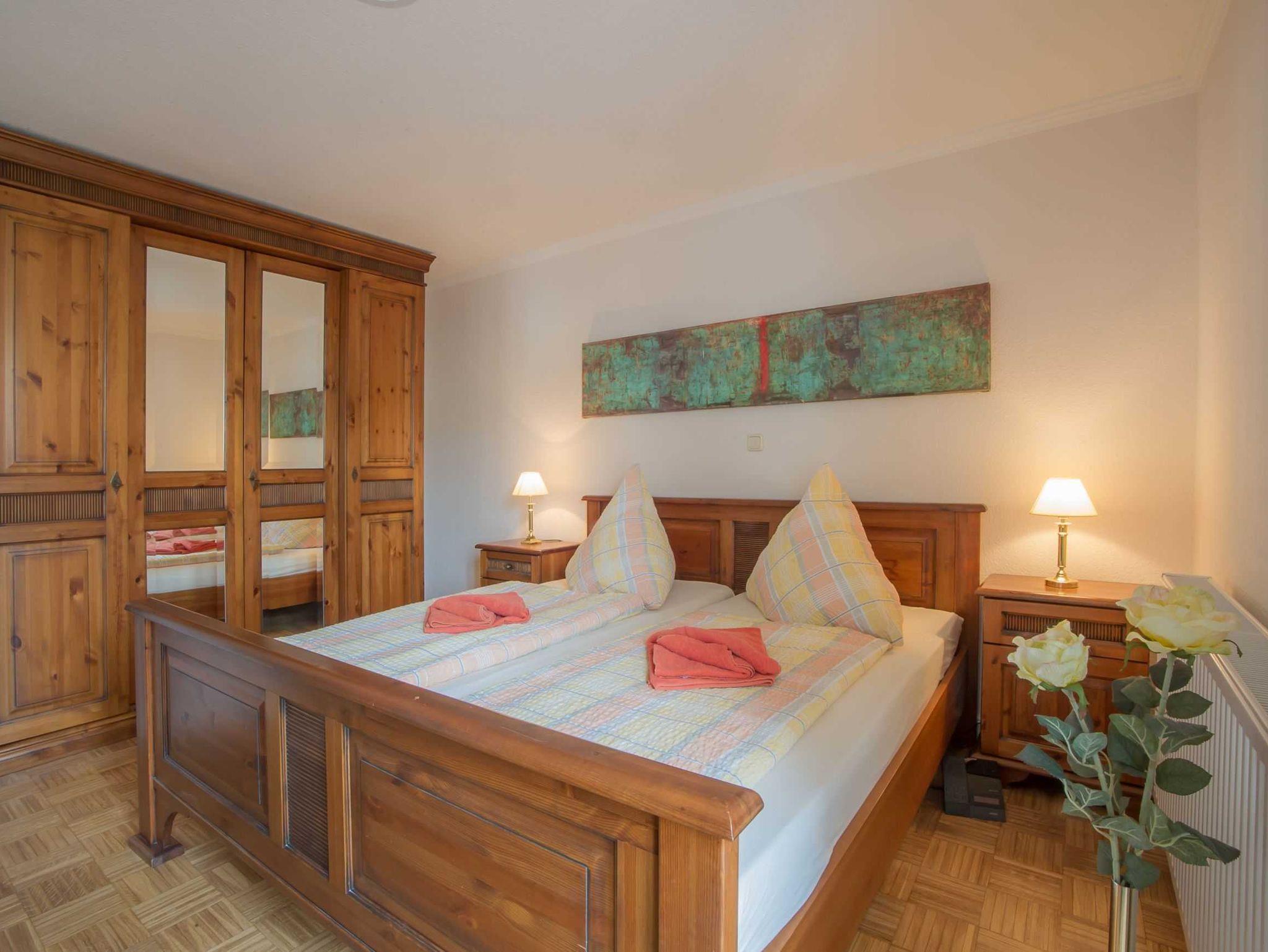 freundliche, stilvoll eingerichtete 3-Zimmer-Wohnung mit Balkon, 2 separate Schlafzimmer, ein großzügiger Wohn-Essbereich mit integrierter Wohnküche, Aufbettung auf komfortablem Schlafsofa, eigener Pkw-Stellplatz, hauseigene Sauna und Whirlpool