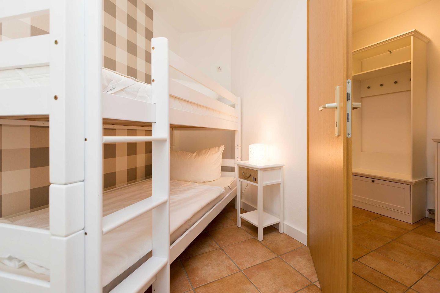 Die moderne Ferienwohnung befindet sich im 2. Geschoss des Hauses. Neu renoviert lassen die hochwertige Möblierung und die liebevollen Dekorationen keine Wünsche übrig. Der Wohnbereich ist offen gestaltet und verfügt über eine vollständig ausgestattete Küchenzeile, einen Essplatz sowie eine gemütliche Sitzecke. Das größere Schlafzimmer ist mit einem Doppelbett und einem zweiten TV eingerichtet, das Gästezimmer verfügt über ein Etagenbett - ideal für Kinder. Ein Duschbad rundet das Angebot ab. Vom Wohnraum haben Sie Zugang zum Balkon. Für unsere kleinen Gäste stehen ein Baby-Reisebett mit Matratze (ohne Wäsche) und ein Kinderhochstuhl zur Verfügung.