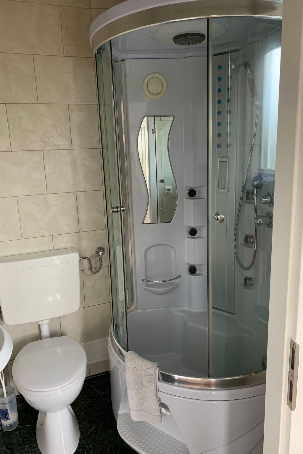 Inside, you will find a 25 square metre flat that is ideal for 2 people. The combined living/sleeping area is furnished with two single beds, a flat screen (satellite TV, radio, DVD), a table and two chairs to create a cosy atmosphere. With a fridge-freezer combination, a multifunctional oven and microwave, a 2-ring hob, toaster, kettle and coffee machine, the kitchen reveals that self-catering is also a top priority here. The interior is complemented by a functional bathroom with shower and practical shelves for shoes and jackets in the hallway.