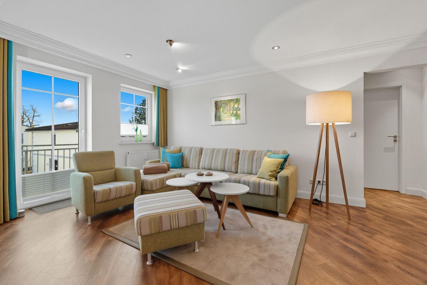 Die mit 4 DTV-Sternen zertifizierte Ferienwohnung „Waldstraße 14“ liegt im Obergeschoss eines Anbaus einer Villa im Bäderhausstil und wurde umfassend renoviert.