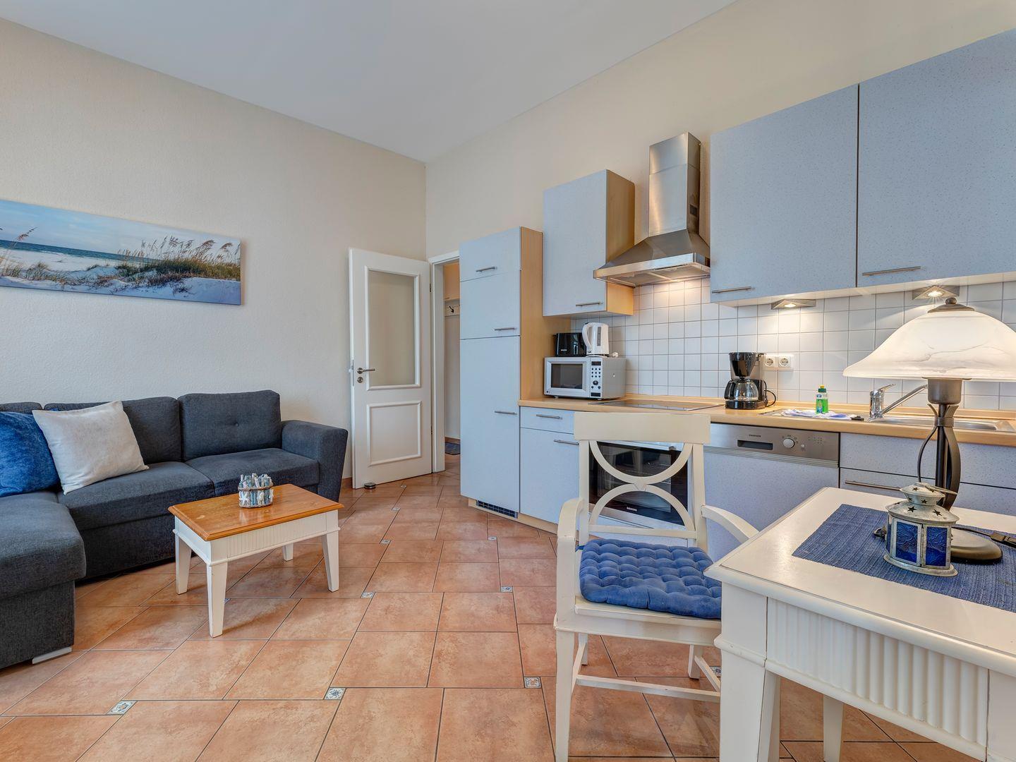 Die lichtdurchflutete, einladende 2-Raum-Wohnung überzeugt durch ihre moderne Einrichtung und liebevolle Dekoration. Sie bietet ein sonniges Wohnzimmer mit Küchenzeile, eine verglaste Veranda mit Couch und Essbereich, ein gemütliches Schlafzimmer mit Doppelbett sowie ein elegantes Duschbad. Auf dem kleinen Balkon können Sie die Nachmittagssonne genießen und den wunderschönen Blick auf Bansin erleben. Ein perfekter Ort für erholsame Tage am Meer.