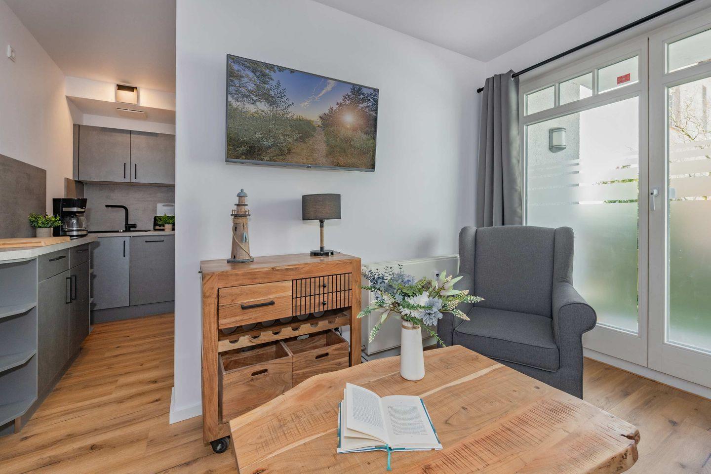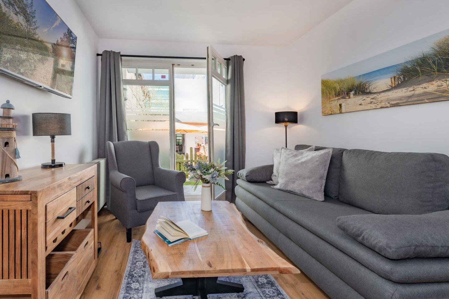 Diese charmante Ferienwohnung liegt nur ca. 150?m vom feinsandigen Ostseestrand entfernt und bietet die perfekte Kombination aus Ruhe, Nähe zur Natur und komfortabler Ausstattung. Auf 37?m² Wohnfläche genießen bis zu vier Gäste ein liebevoll eingerichtetes Zuhause auf Zeit – ideal für Paare, kleine Familien oder Alleinreisende. Die Ferienwohnung befindet sich in einer ruhigen, freistehenden Anlage mit Blick ins Grüne und bietet zugleich einen traumhaften Meerblick – besonders von der möblierten Terrasse aus. Der großzügige Gartenbereich lädt zum Verweilen, Sonnenbaden oder entspannten Frühstücken ein.