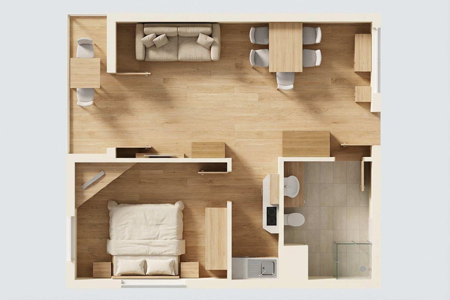 Die Unterkunft verfügt über ein separates Schlafzimmer mit bequemen Schlafmöglichkeiten sowie einen hellen Wohnbereich mit Sofa, Esstisch und Zugang zur Terrasse. Die moderne Küche ist komplett ausgestattet mit Backofen, Spülmaschine, Kaffeemaschine, Wasserkocher, Toaster, Kühlschrank mit Gefrierfach sowie Geschirr und Besteck – hier wird Kochen zum Vergnügen. Im Bad erwarten Sie eine Dusche, WC, Waschbecken sowie ein Haartrockner und ein Ganzkörperspiegel. Fliegengitter an den Fenstern, Steckdosensicherungen sowie WLAN und zwei Smart-TVs (inkl. Radiofunktion) sorgen für zusätzlichen Komfort. Auch eine Waschmaschine sowie ein Wäscheständer stehen zur Verfügung.