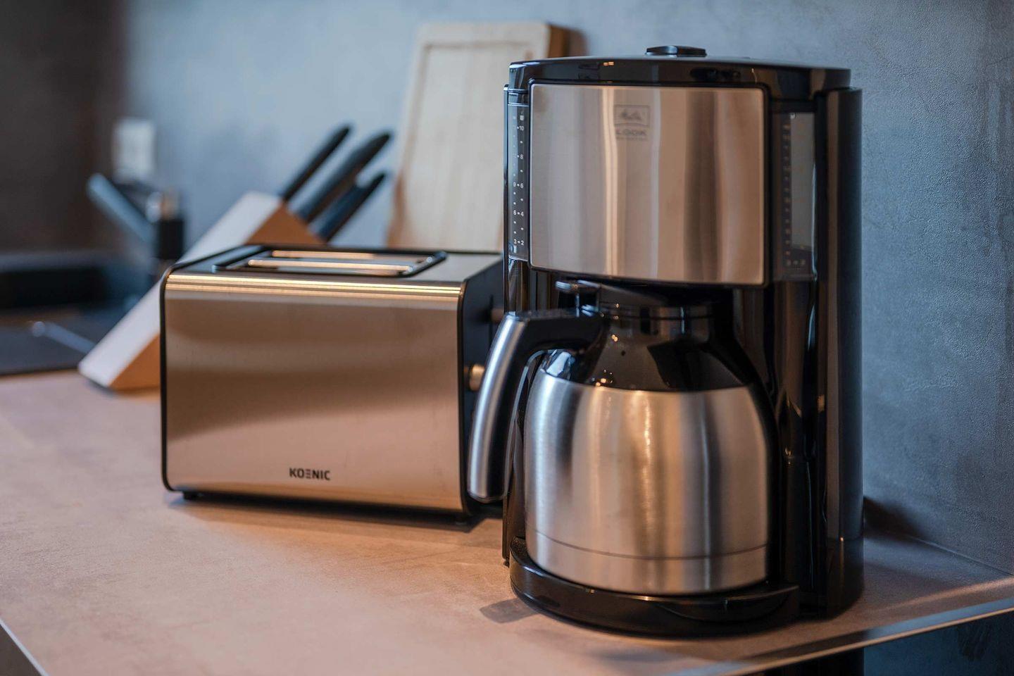 Die komplett ausgestattete, abgeschlossene Küche mit Esstisch bietet sämtliche Annehmlichkeiten zum Kochen und Genießen: Zur Ausstattung zählen ein 4-Platten-Herd, Backofen, Kühlschrank, Gefrierfach, Spülmaschine, Kaffeemaschine, Wasserkocher, Toaster sowie Geschirr und Besteck, Küchenutensilien und Geschirrhandtücher. Für eine entspannte Mahlzeit im Kreis Ihrer Mitreisenden ist somit gesorgt.