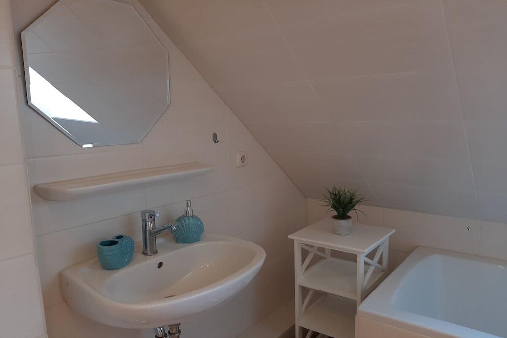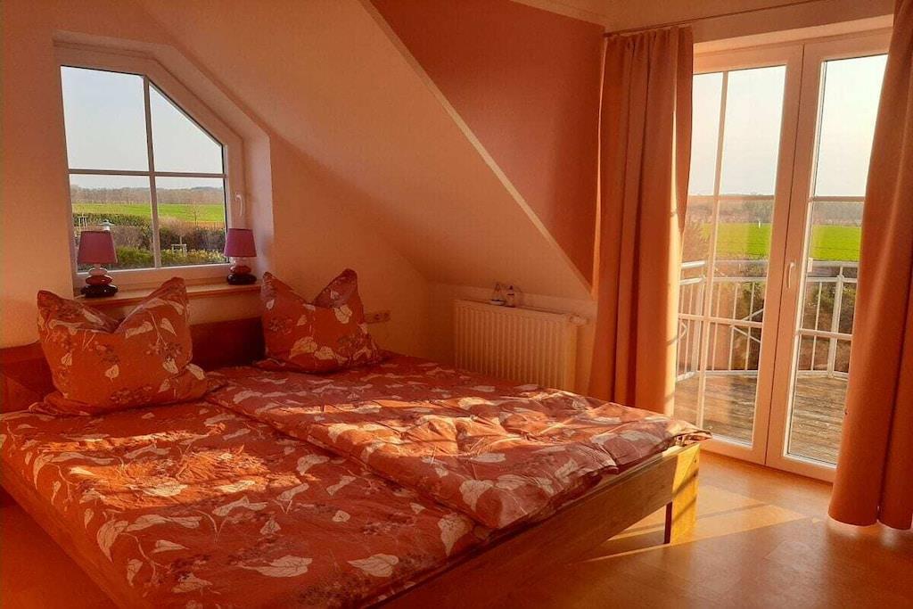 Unsere gemütliche und großzügig geschnittene Ferienwohnung befindet sich im Obergeschoß und besteht aus drei Schlafzimmern, einem modernen Badezimmer mit Wanne und Dusche, einem Gäste-WC sowie aus einer Wohnküche, in der Sie alles finden, was Sie für einen entspannten Urlaub benötigen. Von der lichtdurchfluteten Wohnküche sowie einem Schlafzimmer aus, können Sie den großen, sonnigen Balkon betreten und wunderschöne Sonnenuntergänge genießen. Den Naturstrand erreichen Sie zu Fuß nach etwa 800 Metern. Es wird keine Kurtaxe erhoben! Zudem gibt es auch zwei Hundestrände.