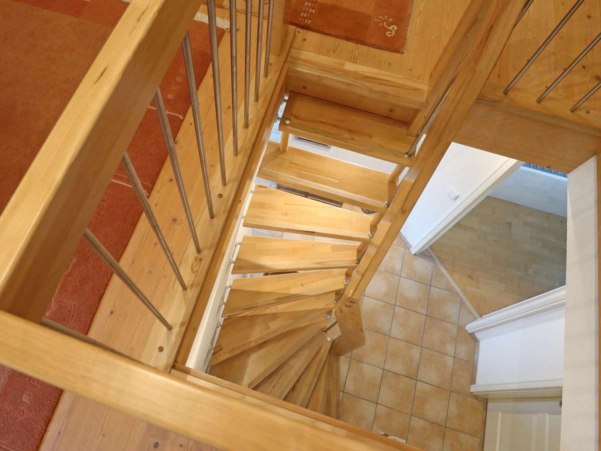 Sie speisen an einem großzügigen Esstisch, oder während der wärmeren Jahreszeit gerne auf dem saisonal möblierten Balkon in Ausrichtung Nord. Im geschmackvoll möblierten Schlafzimmer erwartetet Sie ein bequemes Doppelbett, zudem Kleiderschrank und Schreibtisch. Zugehörig ist ein ebenerdiges Duschbad mit Waschtisch, Handtuchheizung, Föhn, WC, welches sich ebenfalls auf der unteren Wohnebene befindet.
