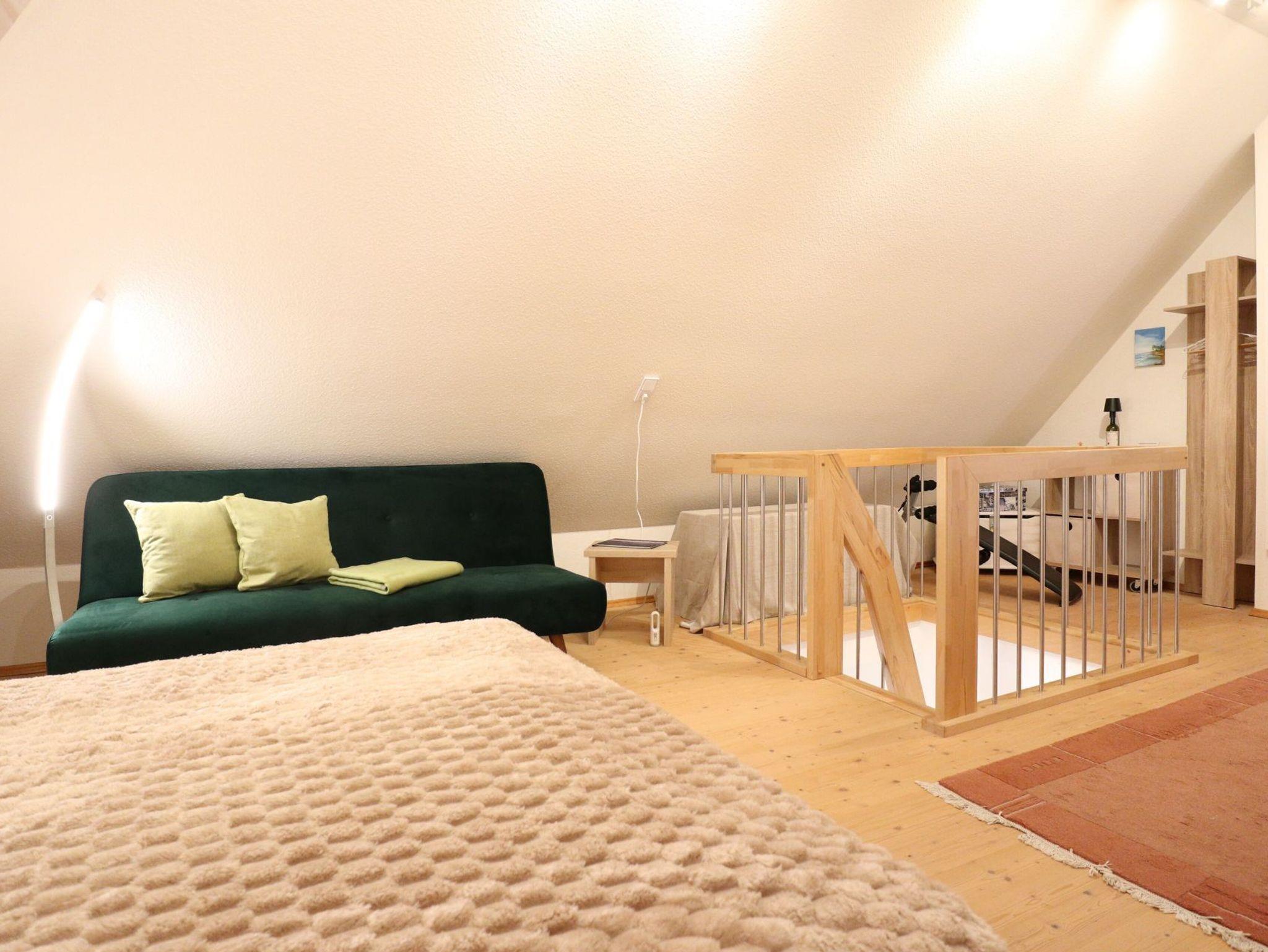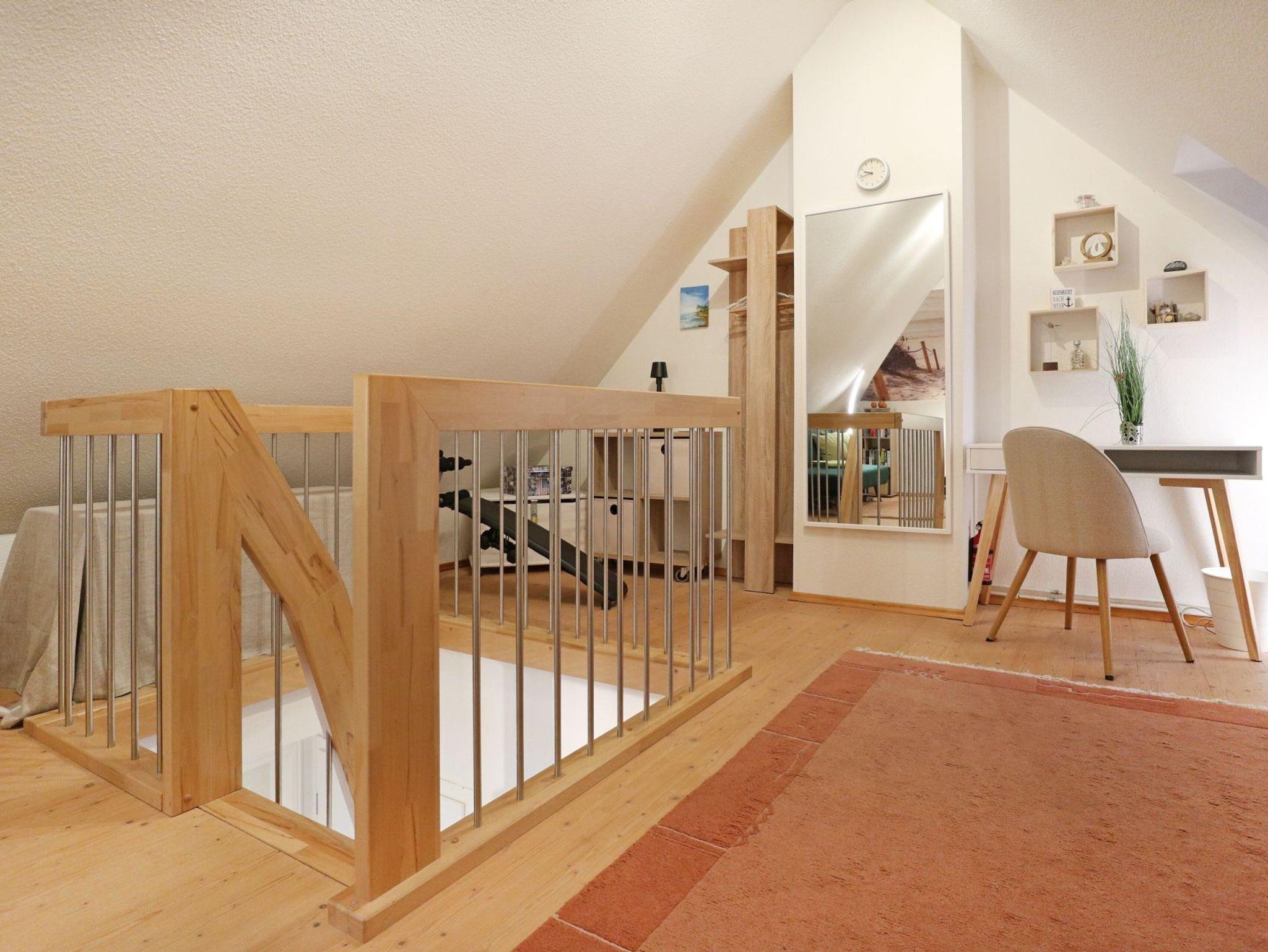 Die 3-Zimmer-Ferienwohnung mit Balkon, erstreckt sich über zwei Ebenen und befindet sich in der 1. Etage eines ruhig gelegenen Reetdachhauses. Eine Belegung der 71qm großen Wohnung ist mit max. 4 Personen möglich.