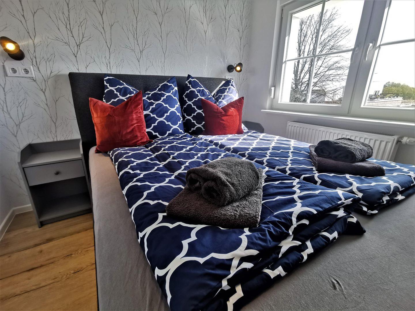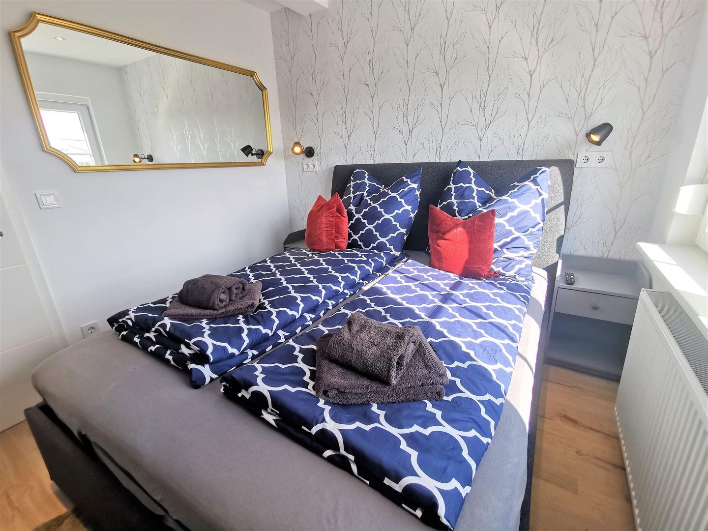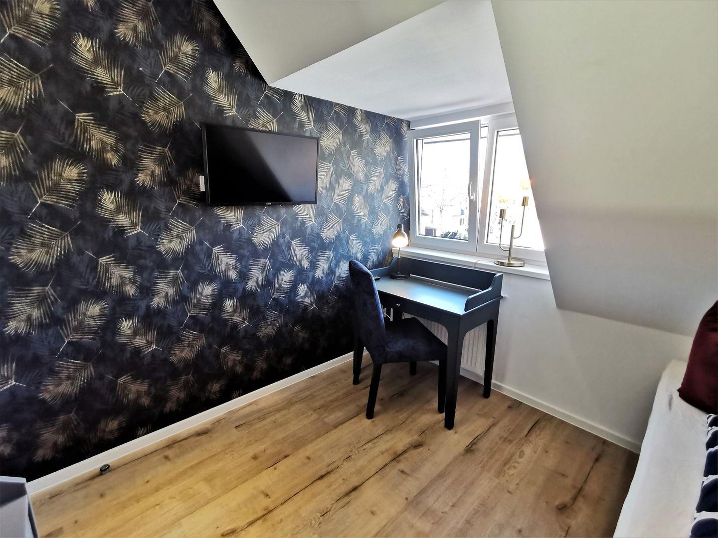 Für Free-TV nutzen Sie die Apps von ARD und ZDF sowie von Samsung TV. Das 2. Schlafzimmer mit einem Einzelbett ist zusätzlich mit einem Schreibtisch mit Tageslicht ausgestattet.