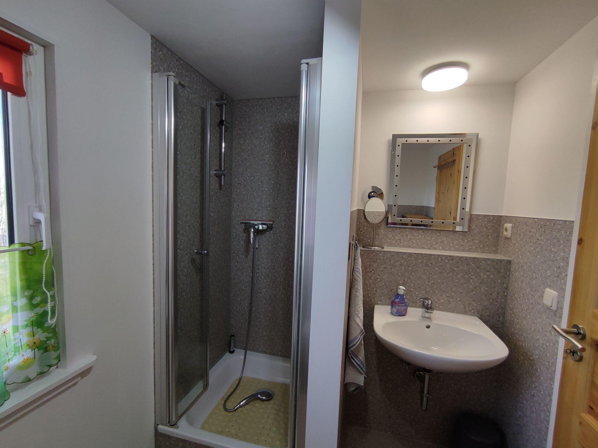 - Bathroom with shower, WC, washbasin, hairdryer, WC seat for children