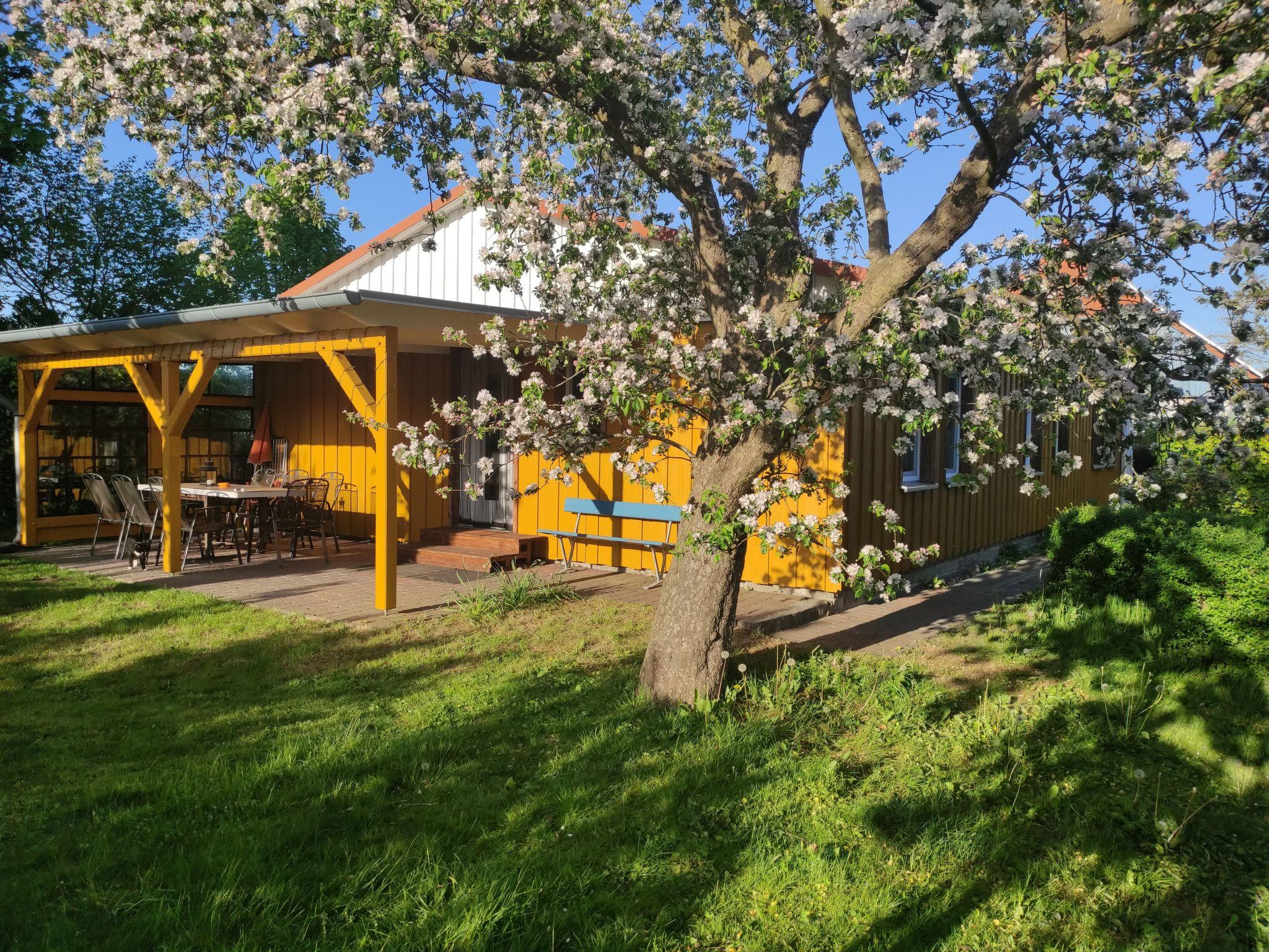 Our bungalow with two holiday flats is located in Wobbelkow, a small village just outside Barth, on a secluded plot of land. Various shopping facilities can be found in Barth, about 6 kilometres away. The fine sandy beach on the Darß and Zingst are exactly 20 kilometres away.