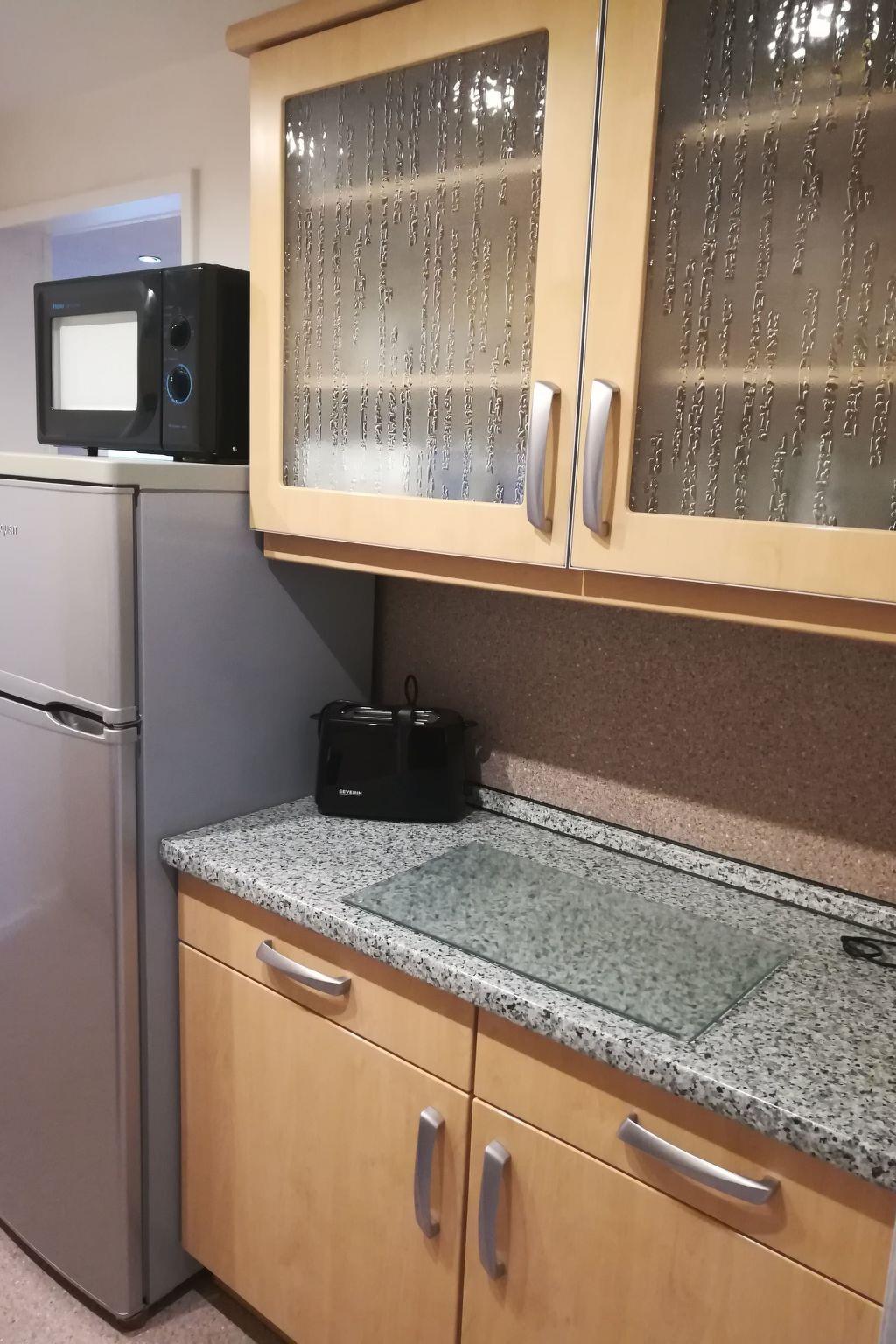 - Kitchen with cooker, oven, toaster, coffee machine, kettle, dishwasher, large fridge with full-size freezer compartment, microwave, washing-up liquid, tea towels and plenty of crockery