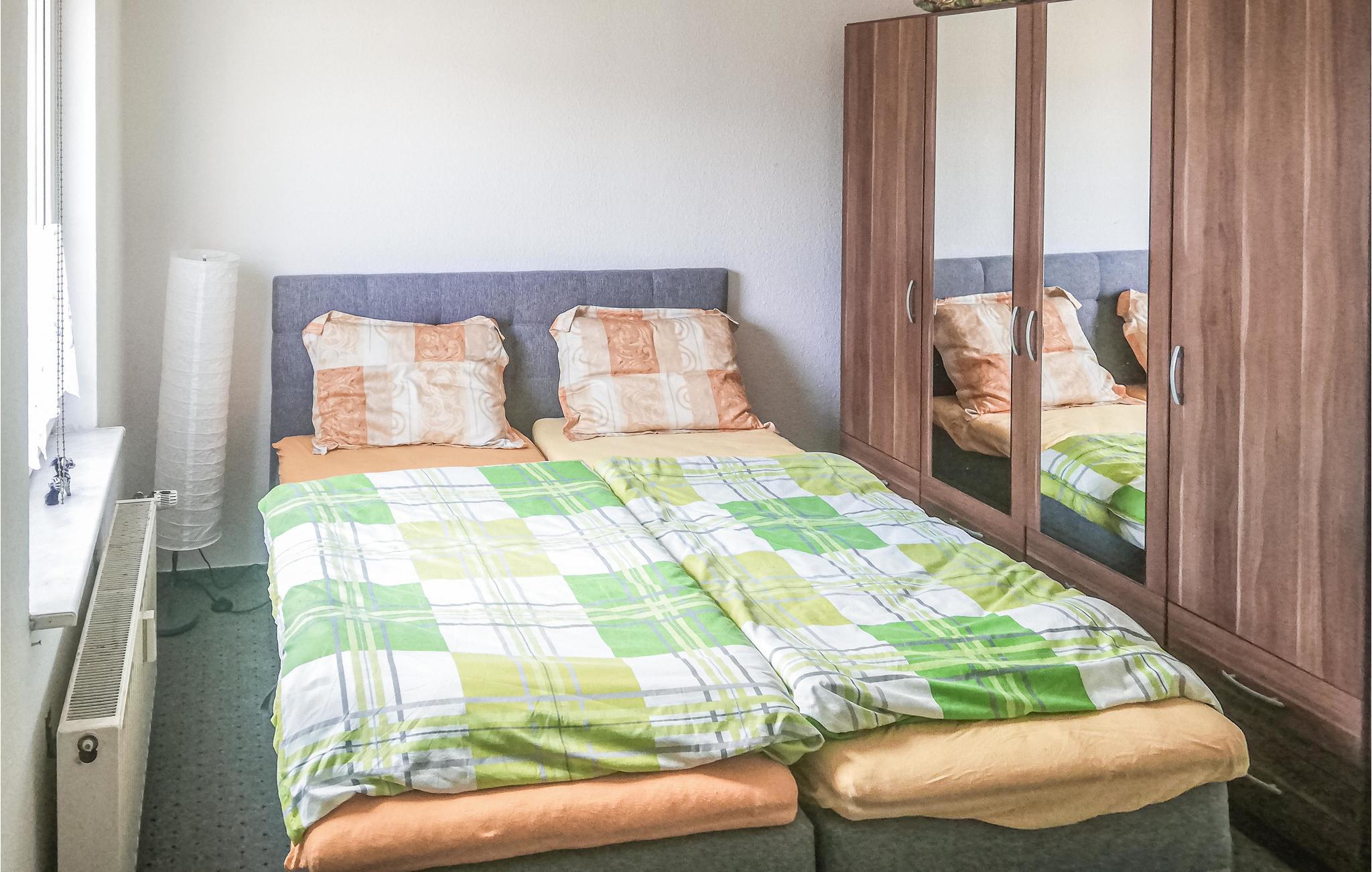 Denne hyggelige lejlighed ligger i stueetagen til et byhus i udkanten af ??den gamle bydel i Barth. Her er der gode rammer til en ferie for to, især når I skal slappe af efter en lang dag på farten. Lejligheden er godt indrettet med alle de faciliteter, I skal bruge. Gør morgenmaden klar i det åbne køkken og læg en plan for dagen, mens I nyder den første kop kaffe.