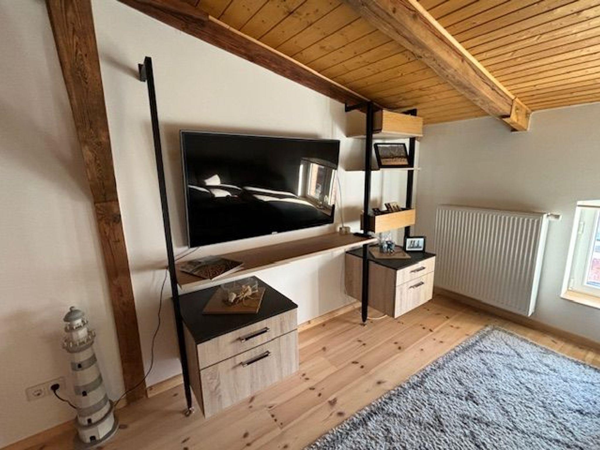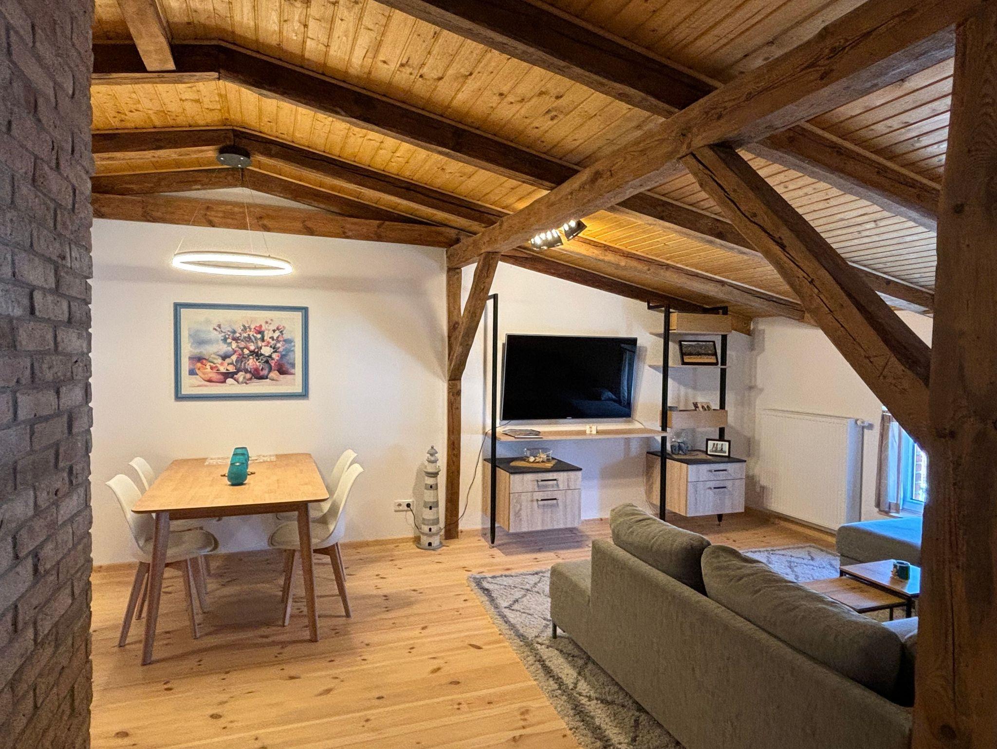 Gemütliche Dachgeschosswohnung, neu saniert und neu eingerichtet. Die offene Küche mit dem Essplatz und dem Wohnzimmer bilden unter dem flachen Dach eine angenehme Einheit. Die beiden Schlafzimmer laden auch zum entspannen ein. Das neue Bad hat mit Dusche und Badewanne beide Optionen.