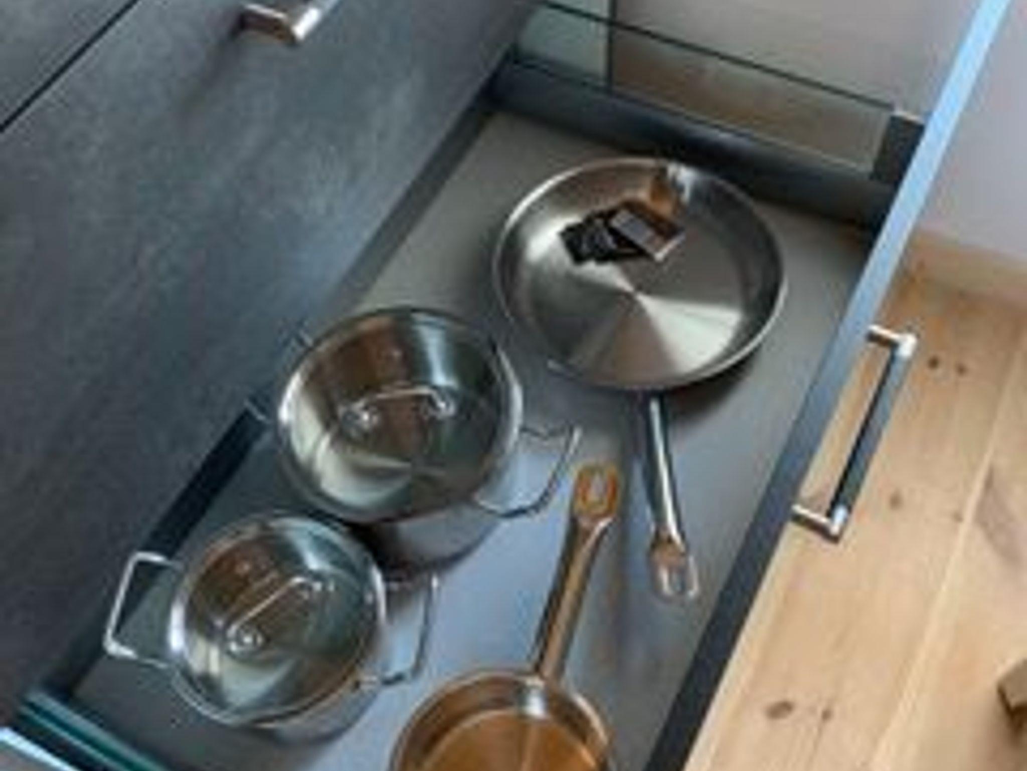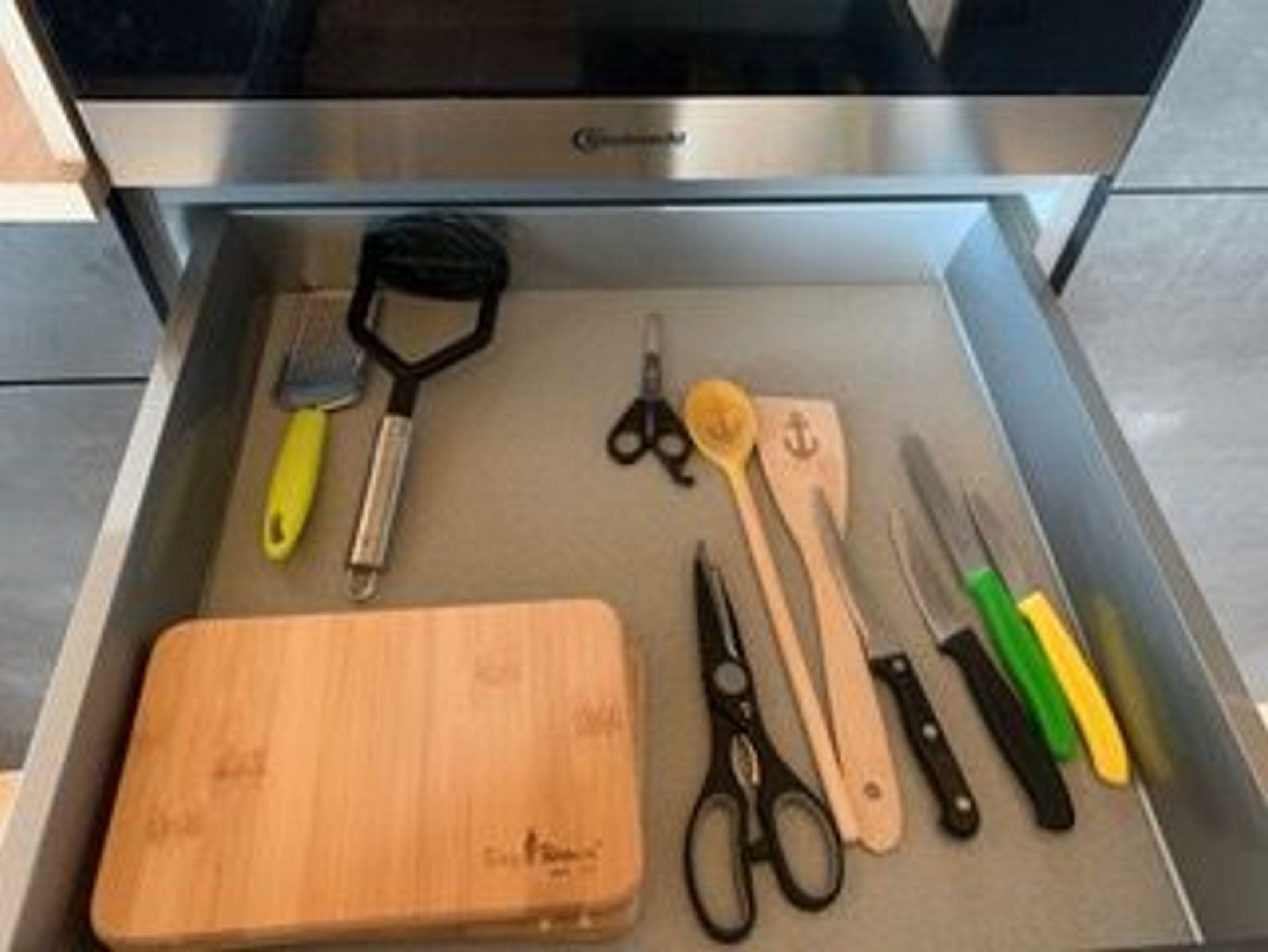 Die Wohnung hat eine komplett ausgestattete Küche mit Toaster, Kaffeemaschine, Backofen, Kühlschrank.