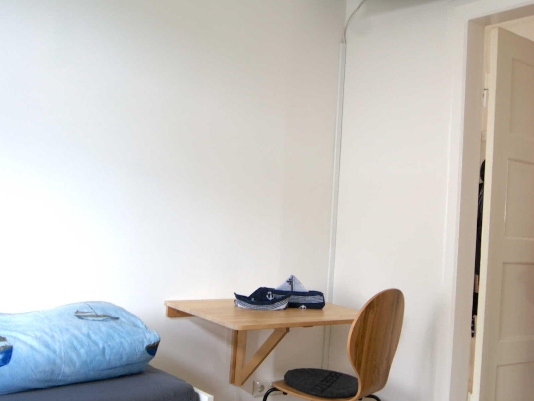 Gesellschaftsspiele, Krimis und Romane liegen bereit. Im Hauptschlafzimmer befindet sich ein 1,80 x 2,00 m großes Boxspringbett und ein begehbarer Kleiderschrank, sowie ein Bügelbrett und Bügeleisen. Im zweiten Schlafzimmer befindet sich ein 0,90 x 2,00 m Bett, welches optional zu einem 1,80 x 2,00 m Doppelbett ausziehbar ist, sowie ein Kleiderschrank und ein kleiner Schreibtisch mit Stuhl. Alternativ kann das dort vorhandene Schlafsofa als zweites Bett genutzt werden. Im Wohnzimmer befindet sich neben dem großen L-förmigen Sofa, auch ein Ohrensessel mit Beinhocker. Das Tageslichtbad ist ausgestattet mit einer 0,86 x 1,30 m großen Dusche mit niedriger Einstiegshöhe und Handtuchheizkörper. Außerdem befindet sich dort auch ein WC, sowie ein großer Waschtisch mit Spiegel und Föhn. Die einzelnen Räume sind über den zentralen Wohnungsflur erreichbar. Die gesamte Wohnung ist (außer Bad) mit einem hellen Parkettboden ausgestattet und eine Nichtraucherwohnung. Die Wohnräume sind nach Westen ausgerichtet und verfügen über sehr viel Tageslicht.