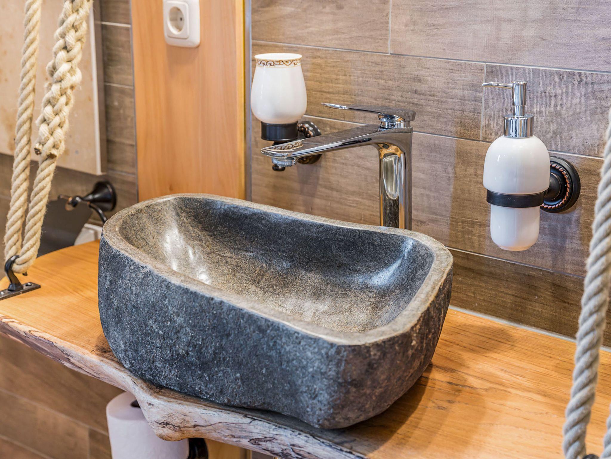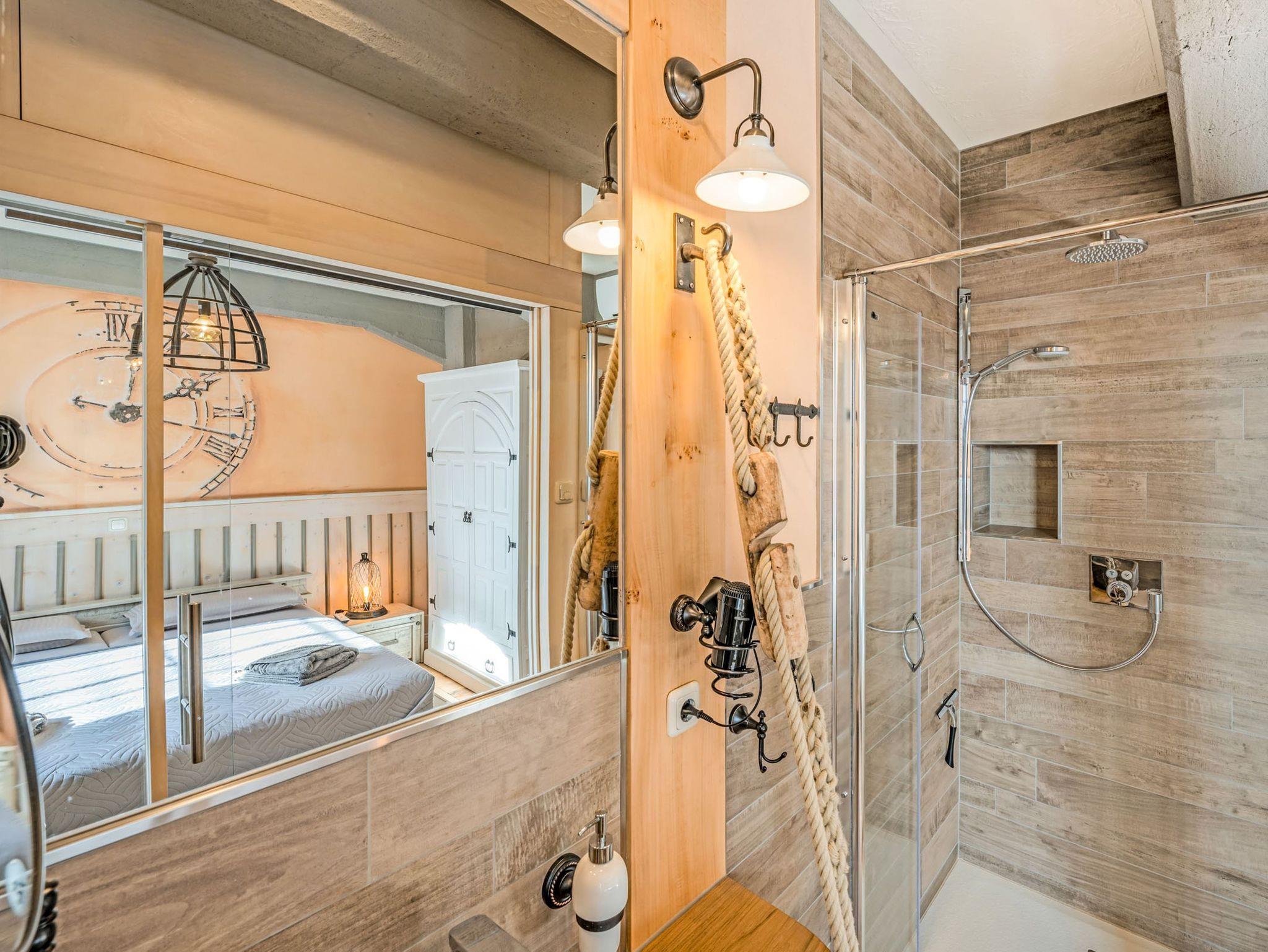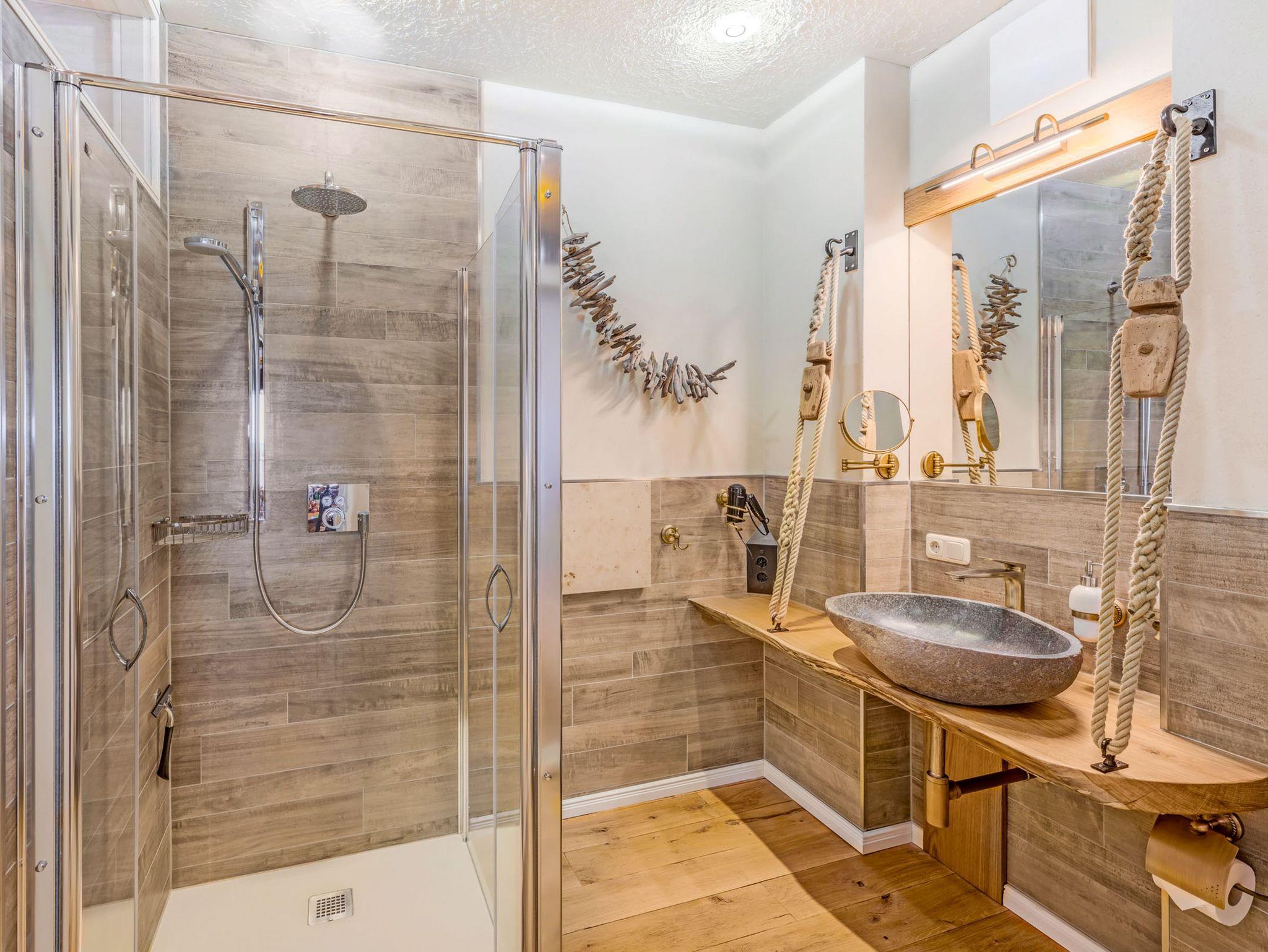 Beide Schlafzimmer sind mit komfortablen Doppelbetten ausgestattet, bestehend aus zwei Matratzen (90x200) mit unterschiedlichen Härtegraden. So findest du ganz individuell deinen persönlichen Schlafkomfort. Eines der Schlafzimmer verfügt über ein Bad en suite, das zweite Bad ist separat zugänglich. Beide Bäder sind modern gestaltet und jeweils mit WC sowie einer ebenerdigen Regendusche ausgestattet. Die Einrichtung ist bewusst martim und hochwertig gehalten und unterstreicht den besonderen Charakter des historischen Speichergebäudes.