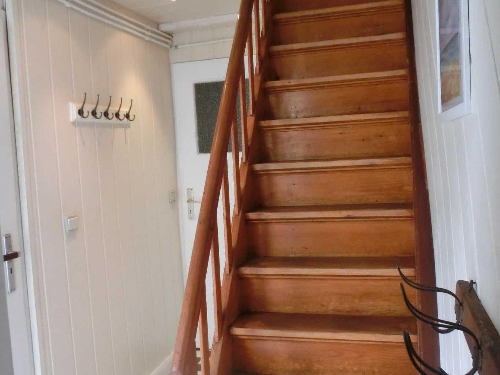 Fliesen und Holzfußboden (teilweise alt), die Treppe zum Obergeschoss ist steiler als üblich.