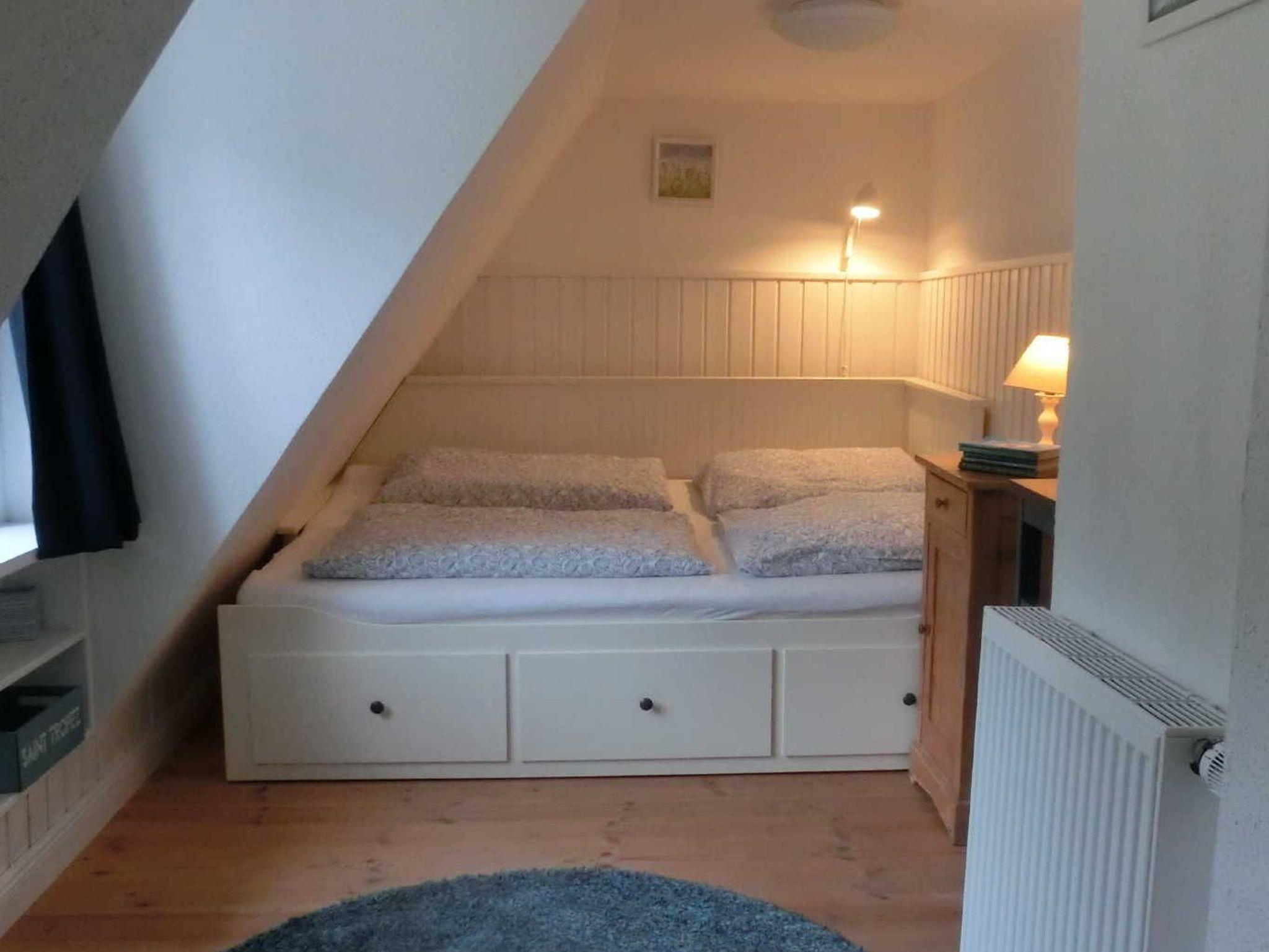 Geräumiges Elternschlafzimmer mit Doppelbett, Schrank, Kommoden sowie Kinderschlafzimmer mit Dachschräge/Gaube.