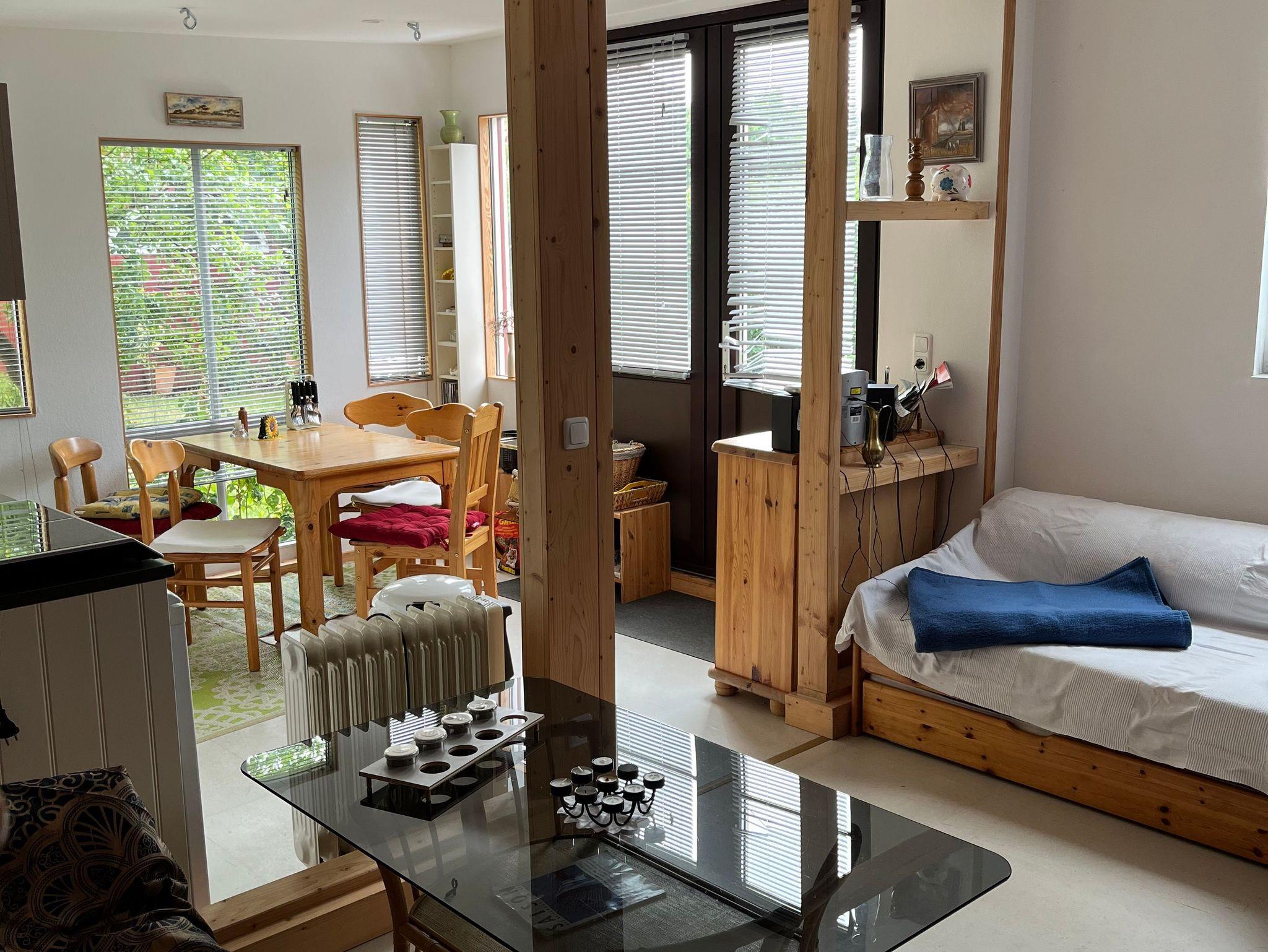 im offenem Holzständerwerk, eingerichtet im charmanten schwedischen Stil. Im gemütlichen