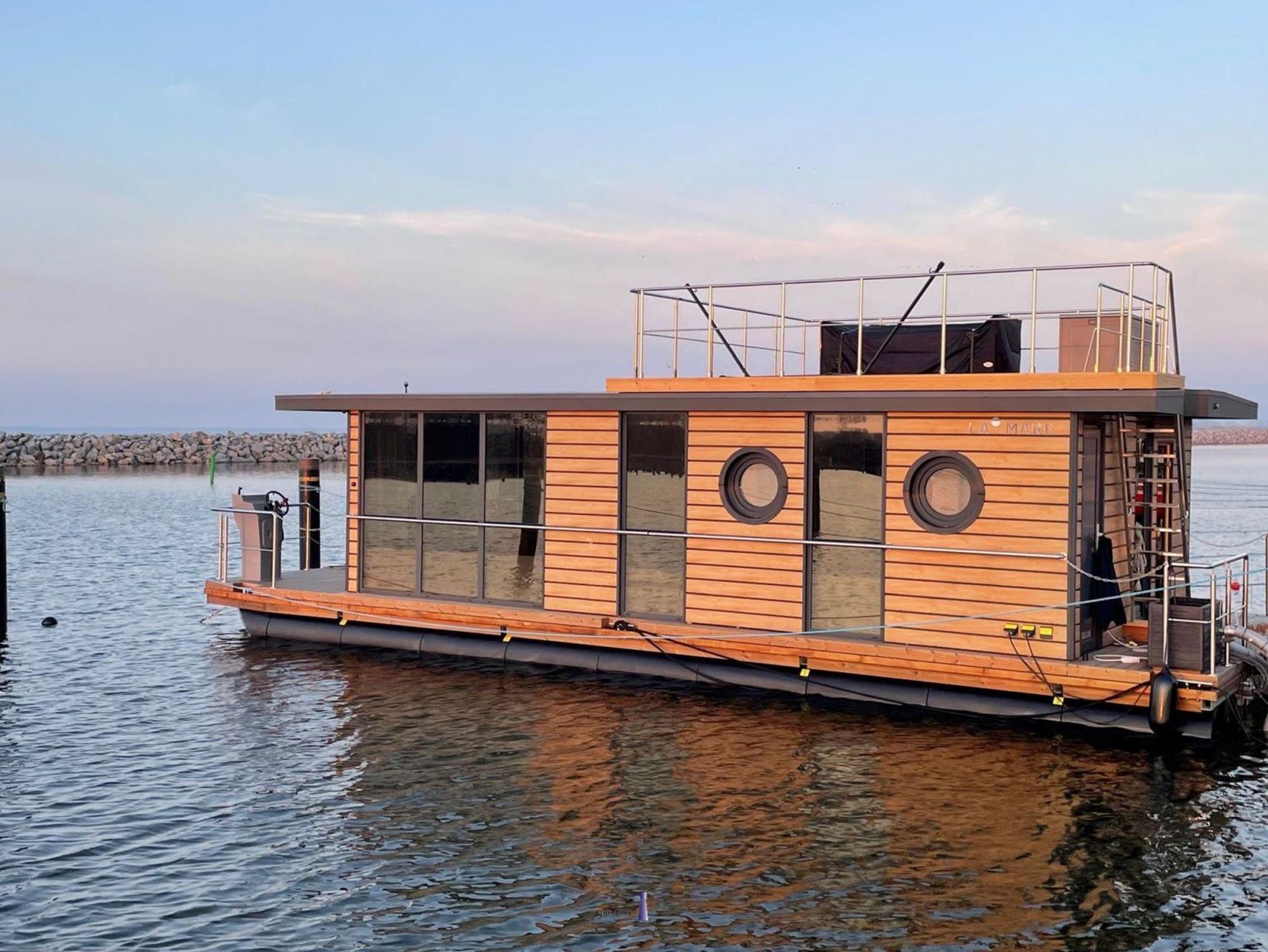 Die vollausgestattete Küche mit allen wichtigen Küchengeräten und einem Induktionsherd lässt keine Wünsche offen. Die Spülmaschine unterstützt Sie dabei, schnell wieder die wesentlichen Dinge des Urlaubes fokussieren zu können. An warmen Tagen laden sowohl die zwei Sonnenterrassen vor und hinter dem Wohnaufbau als auch die Dachterrasse zum Entspannen und Sonnenbaden ein. Auf dieser haben Sie einen atemberaubenden Blick über den Barther Bodden bis zur vorgelagerten Halbinsel Fischland ? Darß - Zingst und können wunderbare Sonnenuntergänge genießen.