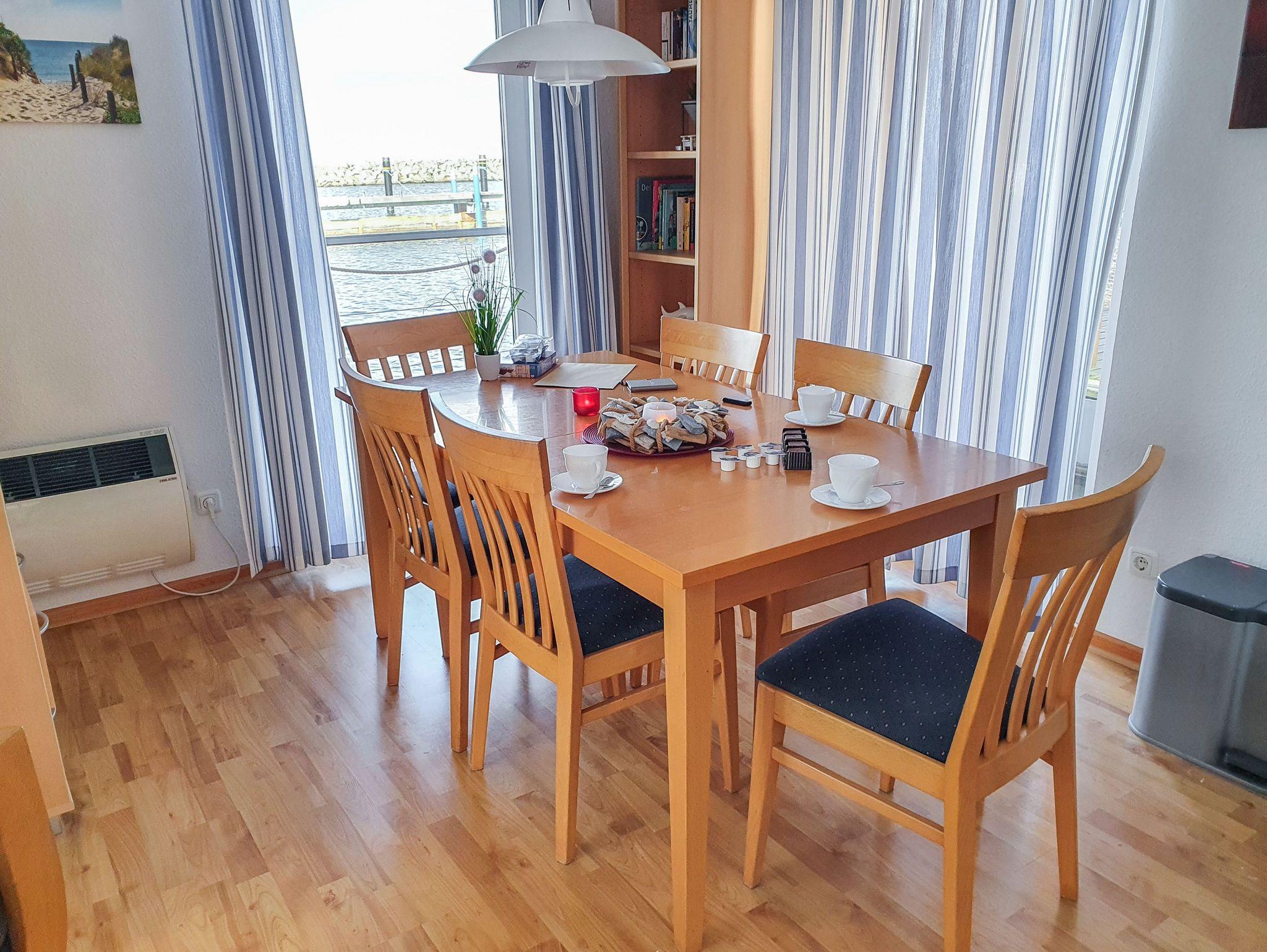 Dein Urlaub auf dem Wasser beginnt im Floating House 1, einem liebevoll eingerichteten Hausboot im Hafen von Barth. Das Hausboot bietet Platz für 6 Personen und ist perfekt für Familien oder Paare, die gemeinsam entspannen und sich gleichzeitig etwas Besonderes gönnen möchten. Auch dein Hund ist herzlich willkommen, denn hier urlaubt ihr ganz nah an der Natur ? und trotzdem mit allem Komfort. Auf zwei Etagen und rund 75m² Wohnfläche erwartet dich maritimes Wohnen mit einer Extraportion Gemütlichkeit. Im unteren Bereich des Hauses findest du ein helles Wohnzimmer mit großem Esstisch, einer gemütlichen Sofaecke und einem Schwing-Sessel mit Hocker ? perfekt zum Füße hochlegen nach einem Tag am Wasser. Die Küche ist offen in den Wohnbereich integriert und bietet alles, was du für entspannte Urlaubstage brauchst. Mit dem Ceranfeld, Backofen, Mikrowelle, Toaster, Wasserkocher und einer klassischen Kaffeemaschine bist du bestens ausgestattet ? ob für ein ausgiebiges Frühstück, einen schnellen Snack zwischendurch oder ein gemeinsames Abendessen mit Blick aufs Wasser. Teller, Tassen, Gläser, Töpfe und Pfannen sind natürlich vorhanden, ebenso ausreichend Besteck und Küchenhelfer. Alles ist übersichtlich verstaut und leicht zugänglich ? genau so, wie man?s sich in einer Ferienküche wünscht. Direkt vom Wohnbereich aus gelangst du auf die Terrasse mit Gartenmöbeln und Elektrogrill ? dein Platz für lange, laue Urlaubsabende. Im oberen Deck findest du zwei Schlafzimmer mit Doppelbetten (180x200) sowie ein drittes Schlafzimmer mit bequemer Schlafcouch (140x200) für zwei weitere Gäste. Dieses lässt sich flexibel auch als Lese- oder Spielzimmer nutzen ? je nachdem, wie du dir deine Auszeit gestalten möchtest. Zwei der Schlafzimmer haben direkten Zugang zum Balkon mit Relax-Liegen ? und einem wundervollen Blick über den Bodden. Natürlich ist auch an alles Praktische gedacht: Ein Bad mit Dusche und Haartrockner, ein eigener Parkplatz am Gelände, ein Handwagen für dein Gepäck und eine kleine Hütte auf dem Steg zum Abstellen von Fahrrädern oder Angelausrüstung stehen dir zur Verfügung. Auf dem Geländer werden Waschmaschine und Trockner gegen Gebühr angeboten. WLAN bekommst du über das Hafennetz und wenn du magst, kannst du mit deinem eigenen Boot direkt am Haus anlegen. Die Fotos zeigen typische Ausstattungsbeispiele. Abweichungen sind möglich.