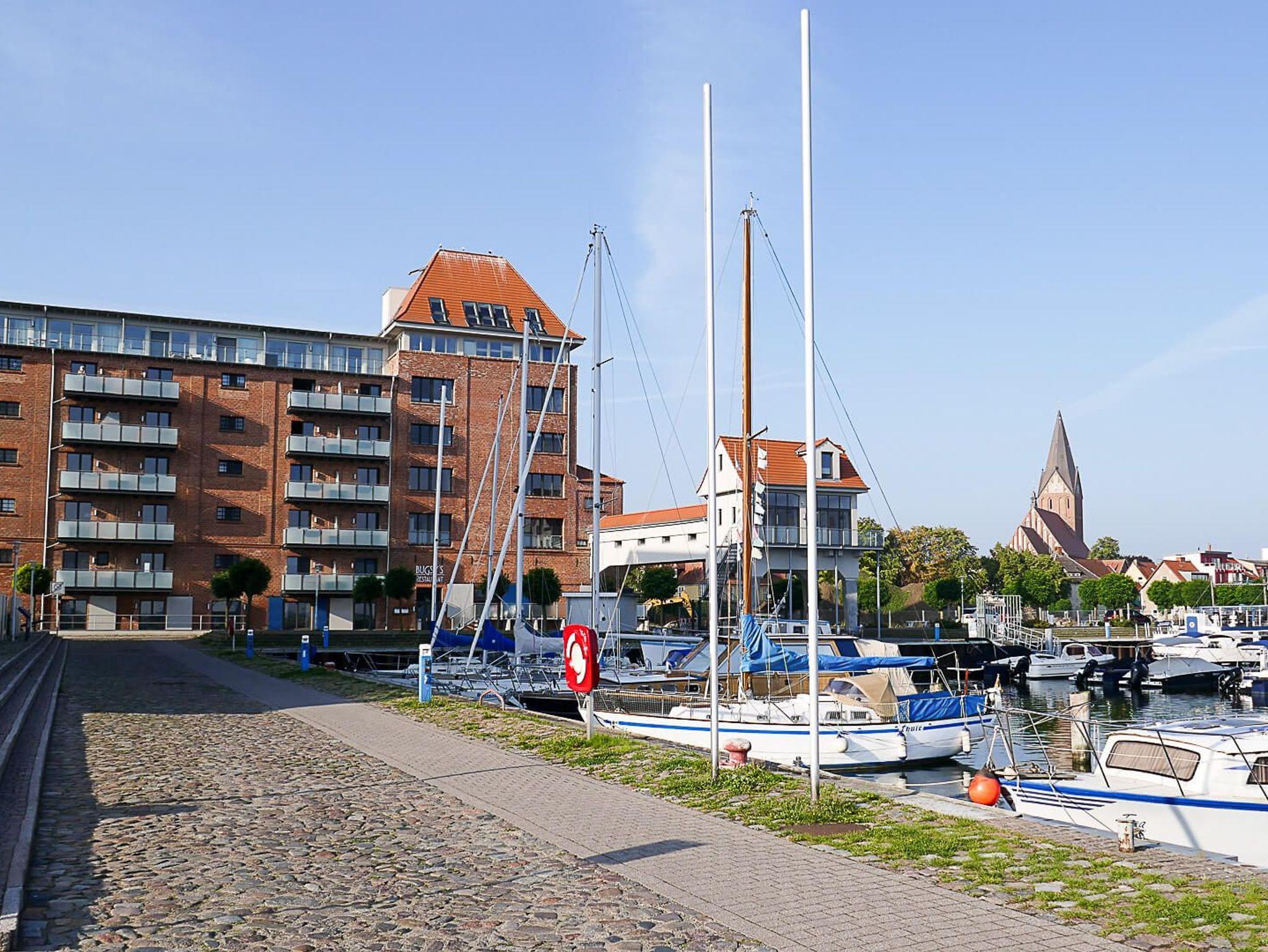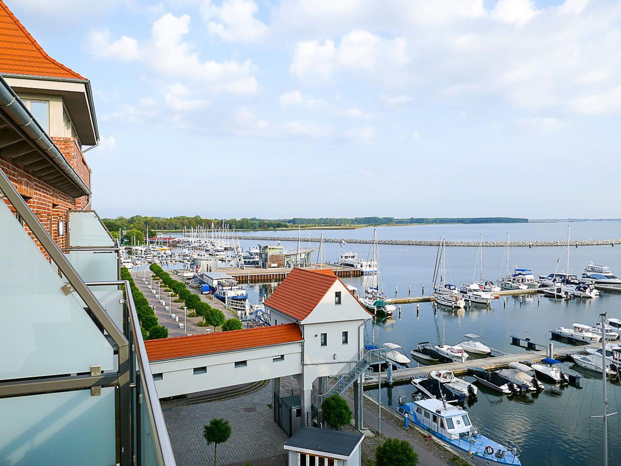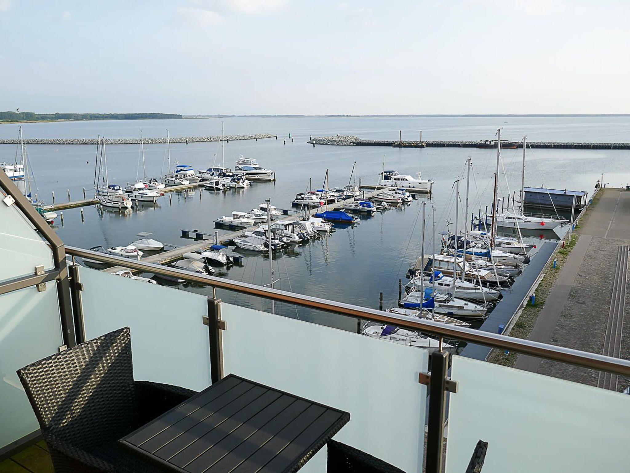 Vom Balkon haben Sie einen unverbauten Blick auf den Barther Hafen und können bei gutem Wetter Ihren Blick sogar bis nach Zingst schweifen lassen. Der Balkon verfügt über Sitzmöglichkeiten für 2 Personen und einen kleinen Tisch.