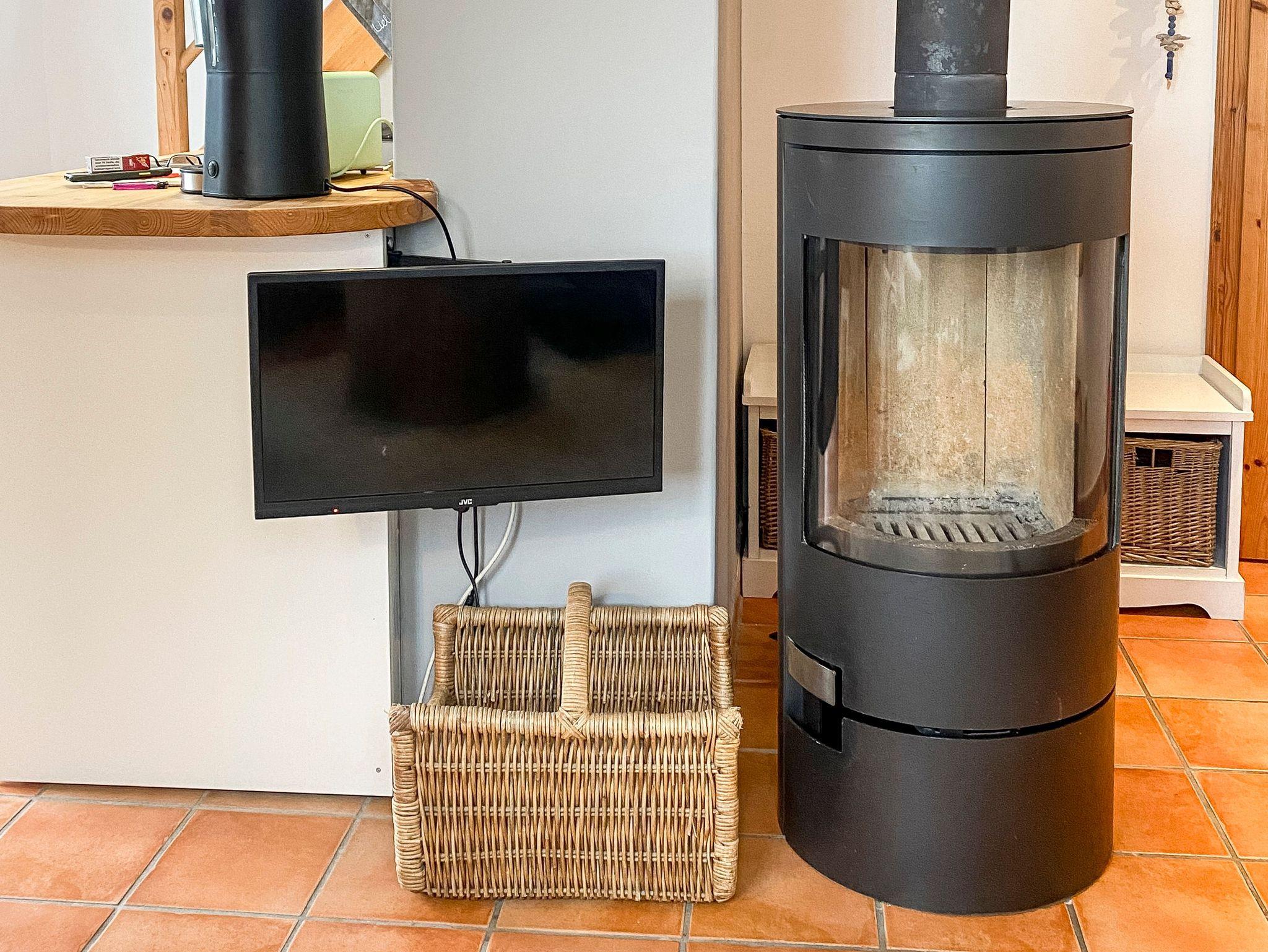 Im Erdgeschoss befindet sich der offene Küchen- und Wohnbereich mit Kaminofen und einem Schlafsofa sowie das Badezimmer. Im Dachgeschoss befindet sich das Schlafzimmer mit einem Doppelbett. Im Keller wurde eine schöne, moderne Sauna errichtet. Ebenso befinden sich im Keller die Waschmaschine und der Trockner.