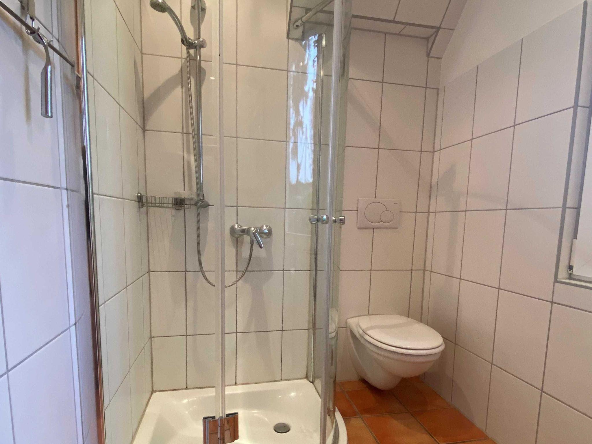 Im Erdgeschoss finden Sie außerdem das Badezimmer mit Dusche und Fußbodenheizung.