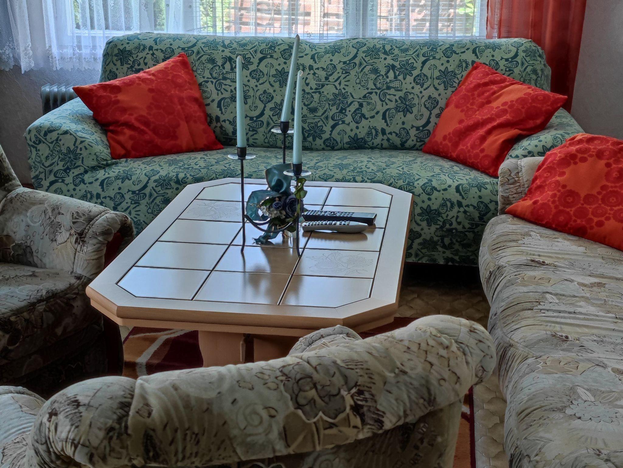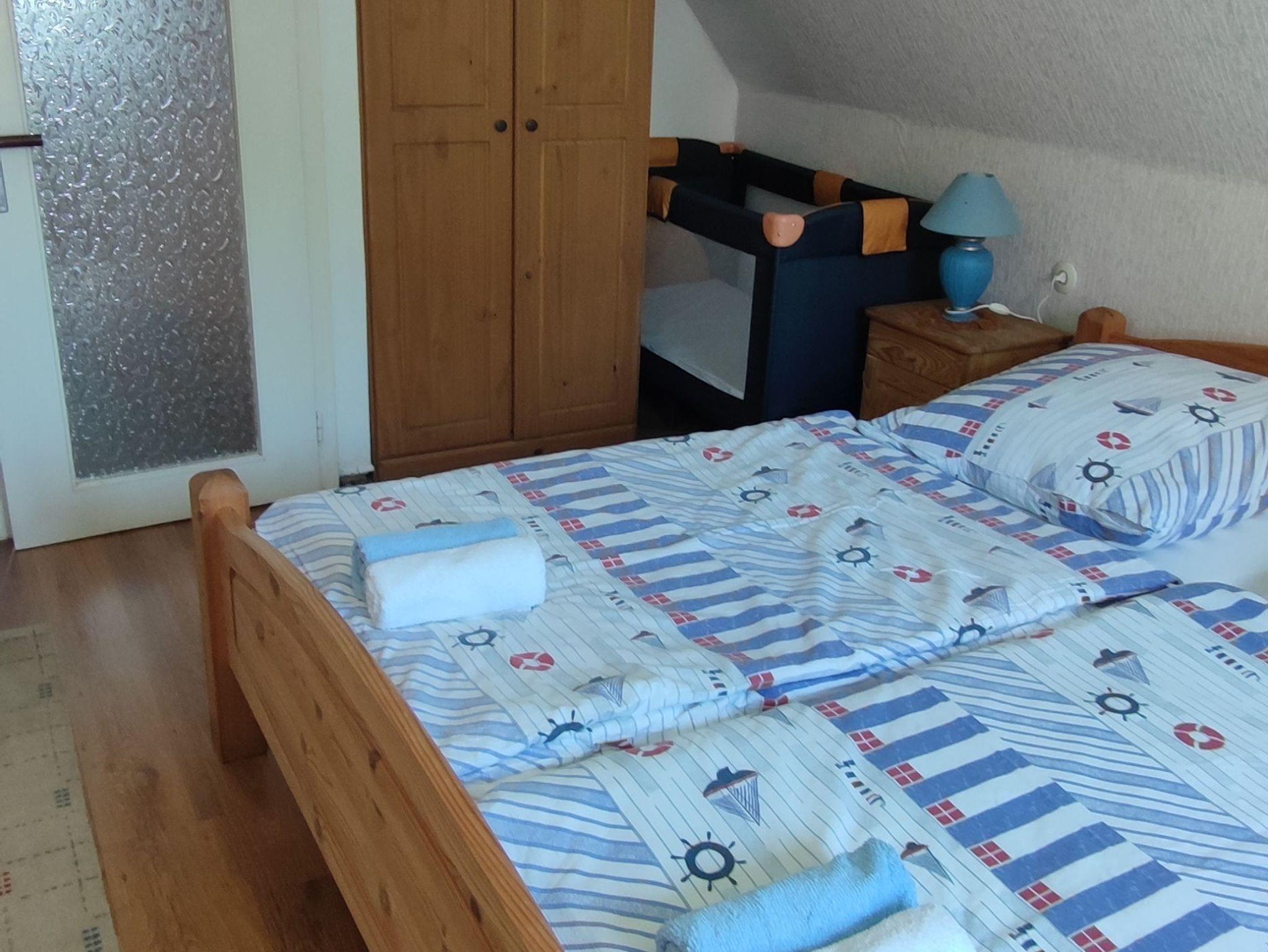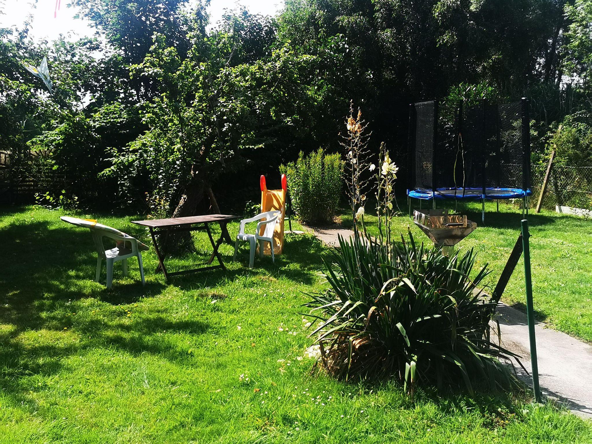 2 Schlafräume, 1 Wohnzimmer, Badezimmer mit Dusche. Das Ferienhaus befindet sich im Garten des Grundstück.
