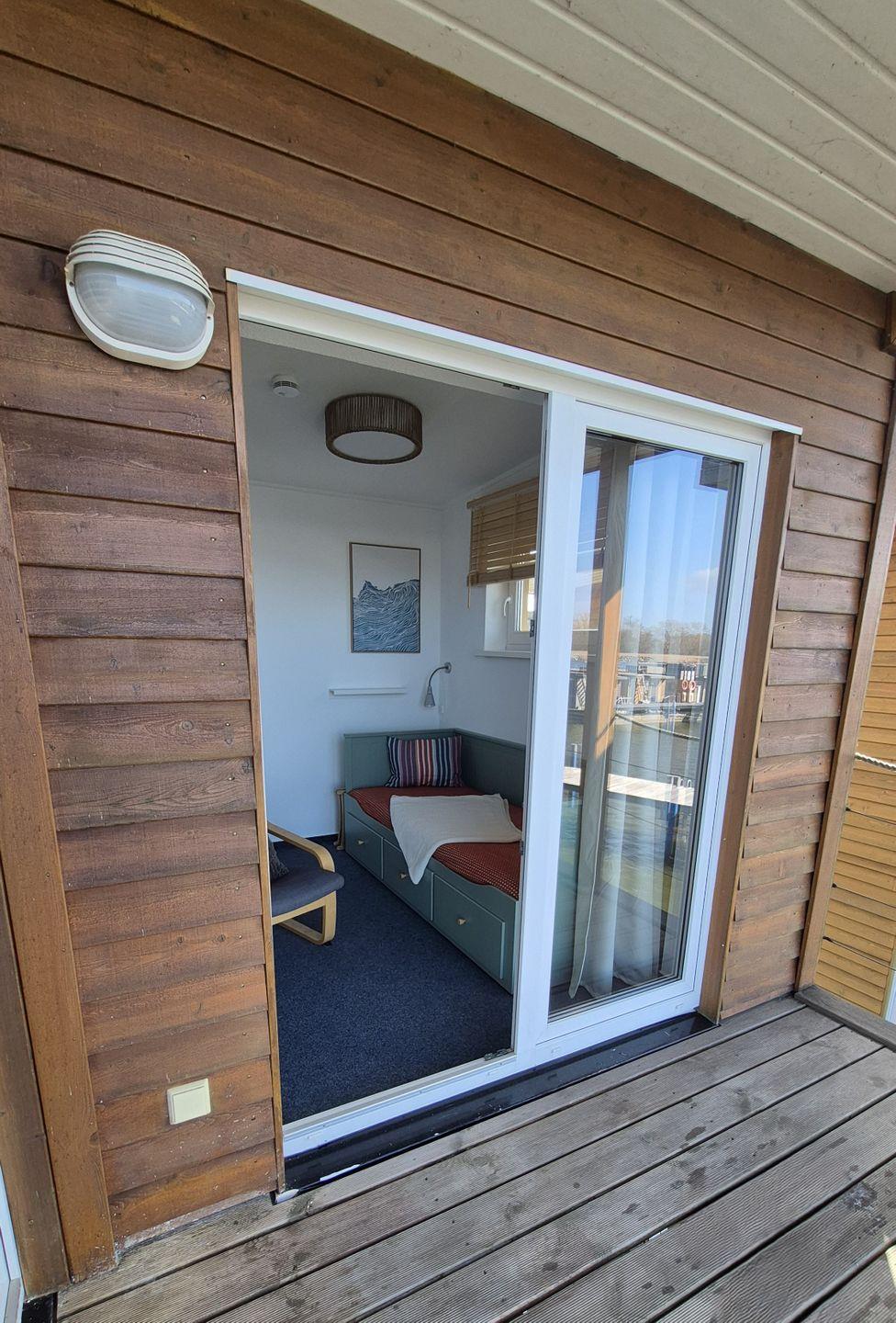 Das FLOATING HOUSE Fischland ist modern eingerichtet und verfügt über zwei Decks: