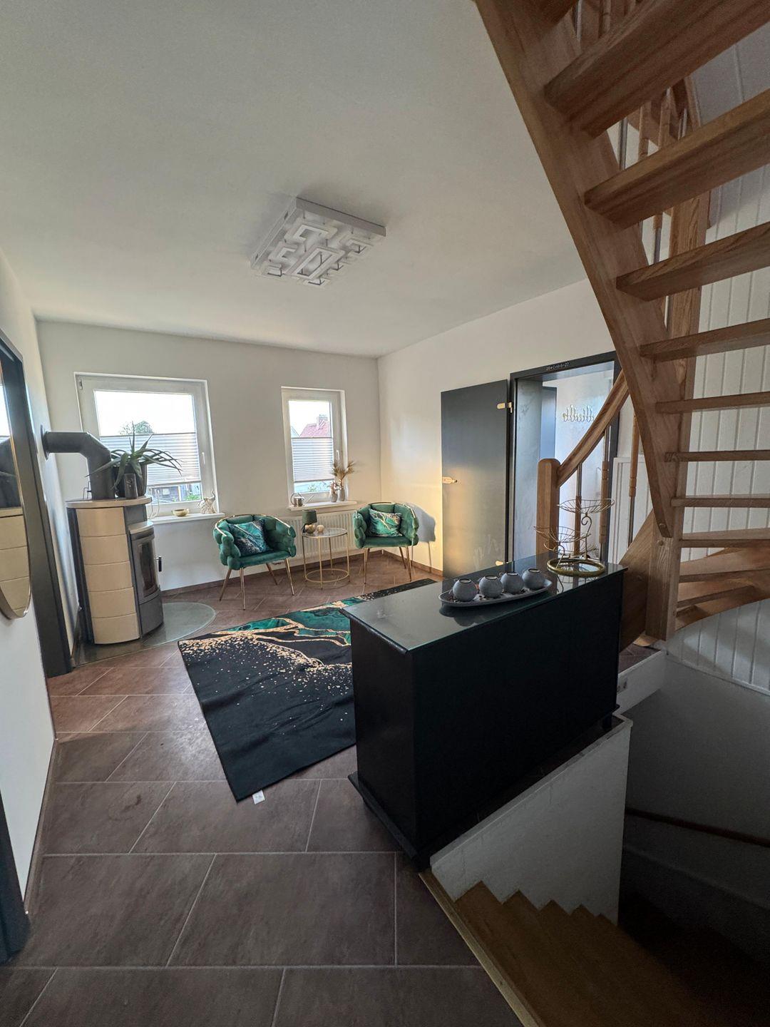 Das Ferienhaus Shaanti, bedeutet Haus der Ruhe. Dieses finden Sie in dem liebevoll eingerichteten Ferienhaus mit 130 qm Wohnfläche im kleinen Örtchen Barth. Das Haus wird für max. 4 Personen vermietet. Im Erdgeschoss befindet sich das gemütliche Wohnzimmer, von dem Sie direkt auf die Terrasse und den wunderschönen Garten gelangen. Das Haus besticht durch liebevoll eingerichtete Zimmer, in denen man sich sofort wohlfühlt. Die zwei großen Schlafzimmer sind mit bequemen Doppelbetten ausgestattet und beide Bäder haben eine Dusche und Badewanne. Im wunderschönen 640 qm großen Garten können Sie sich entspannen und den Tag genießen. Das Grundstück ist komplett eingezäunt und auch ein kleiner Teich befindet sich auf dem Hof. Haus Shannti liegt ruhig gelegen und doch ist man in 10 Minuten am wunderschönen Strand in Zingst.