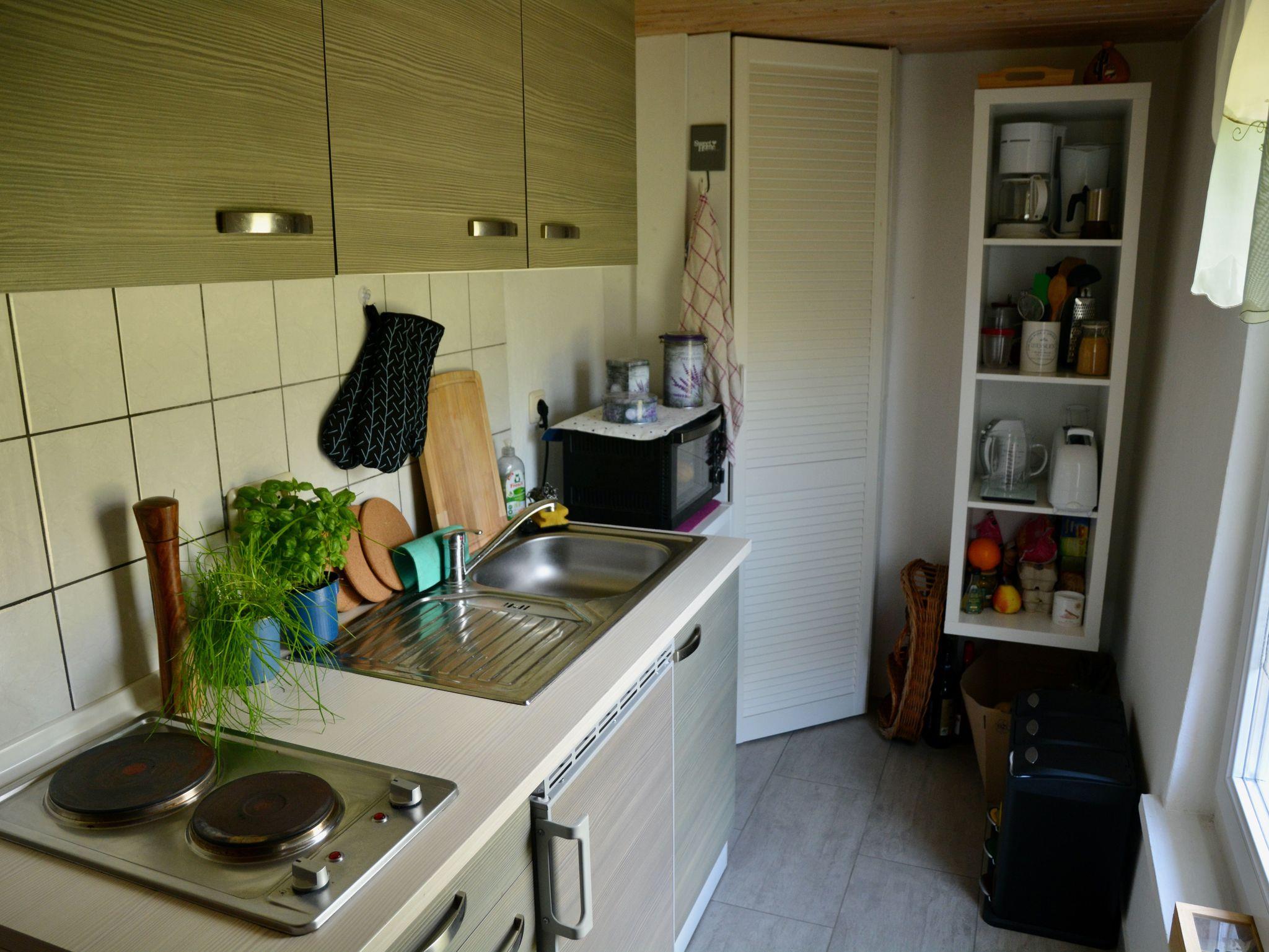 Das geräumige Wohnzimmer mit Flachbild-Sat-TV, bietet genügend Platz für bis zu vier Personen. Für kühle Abende steht ein Holzkaminofen zur Verfügung. Im Schlafzimmer und der Kuschel-Bett-Ecke finden bis zu 4 Personen einen Schlafplatz.